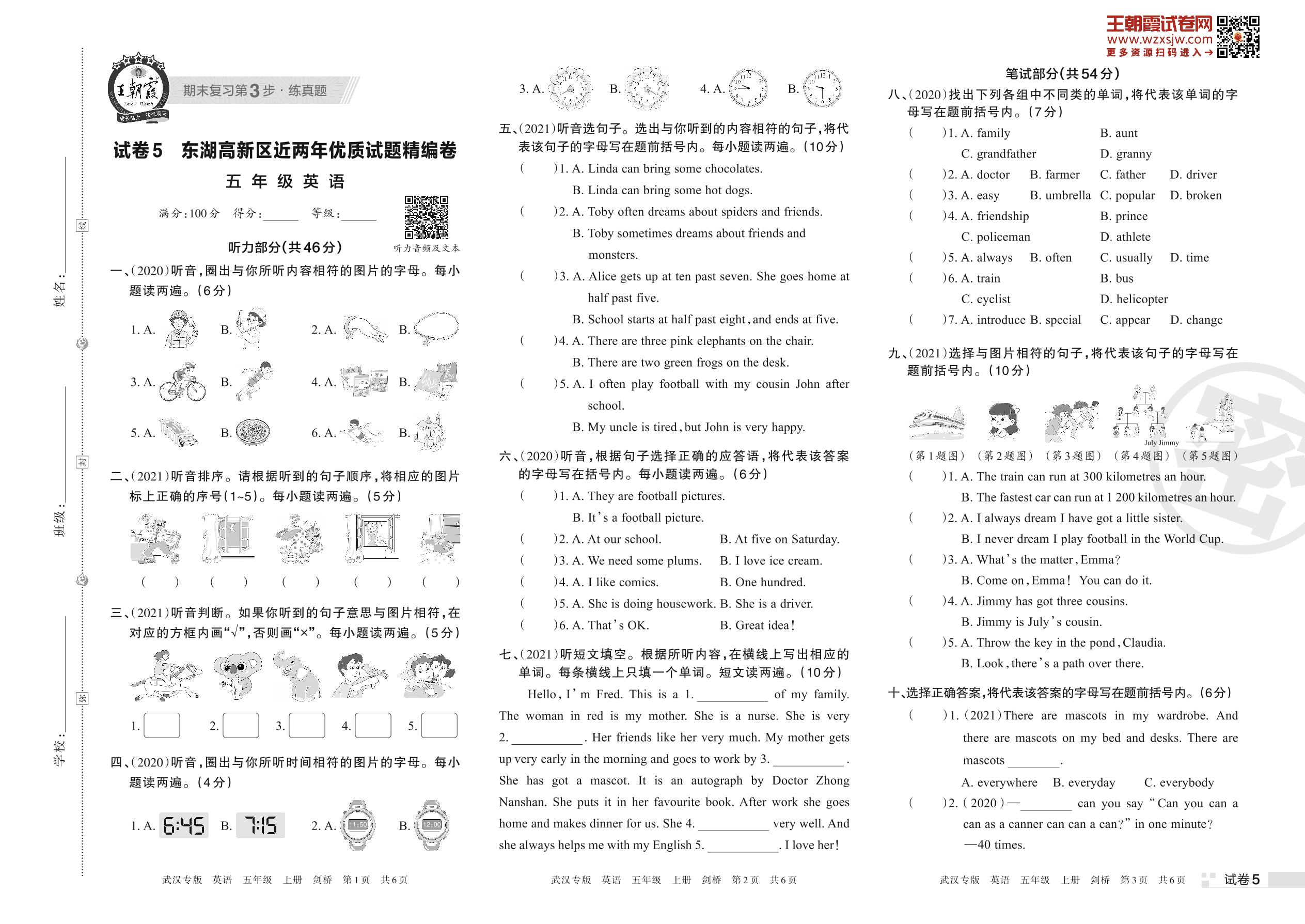 东湖高新区近两年优质试题精编卷五年级英语(剑桥版)【5】