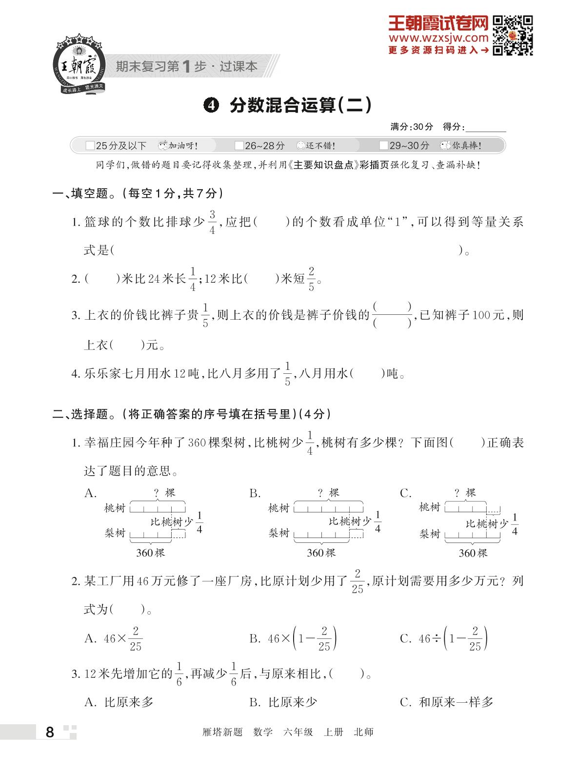 王朝霞期末过课本——4 分数混合运算(二)六年级上册数学(北师版)_R221123170916210