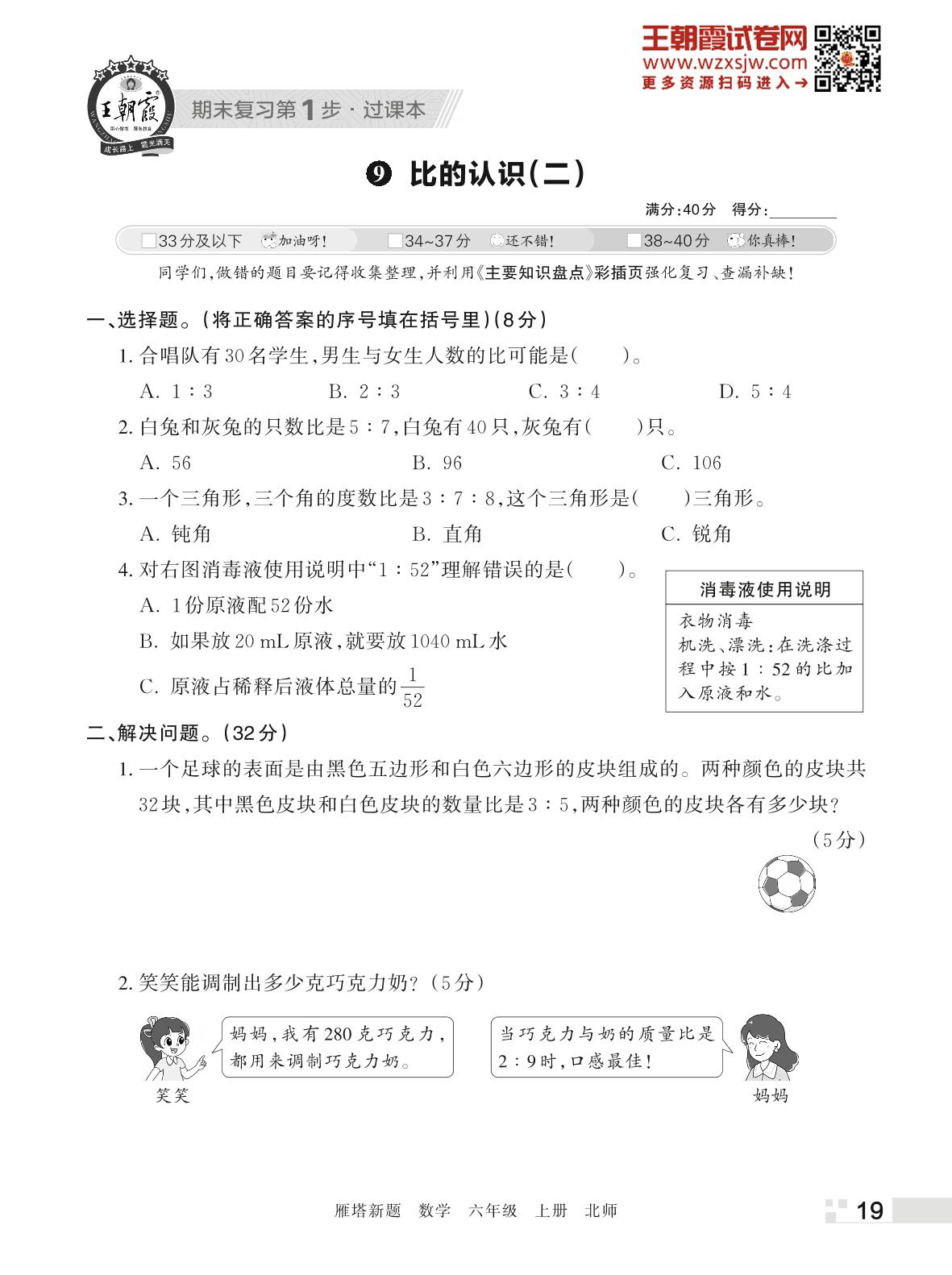 王朝霞期末过课本——9 比的认识(二)六年级上册数学(北师版)_R221123170917378