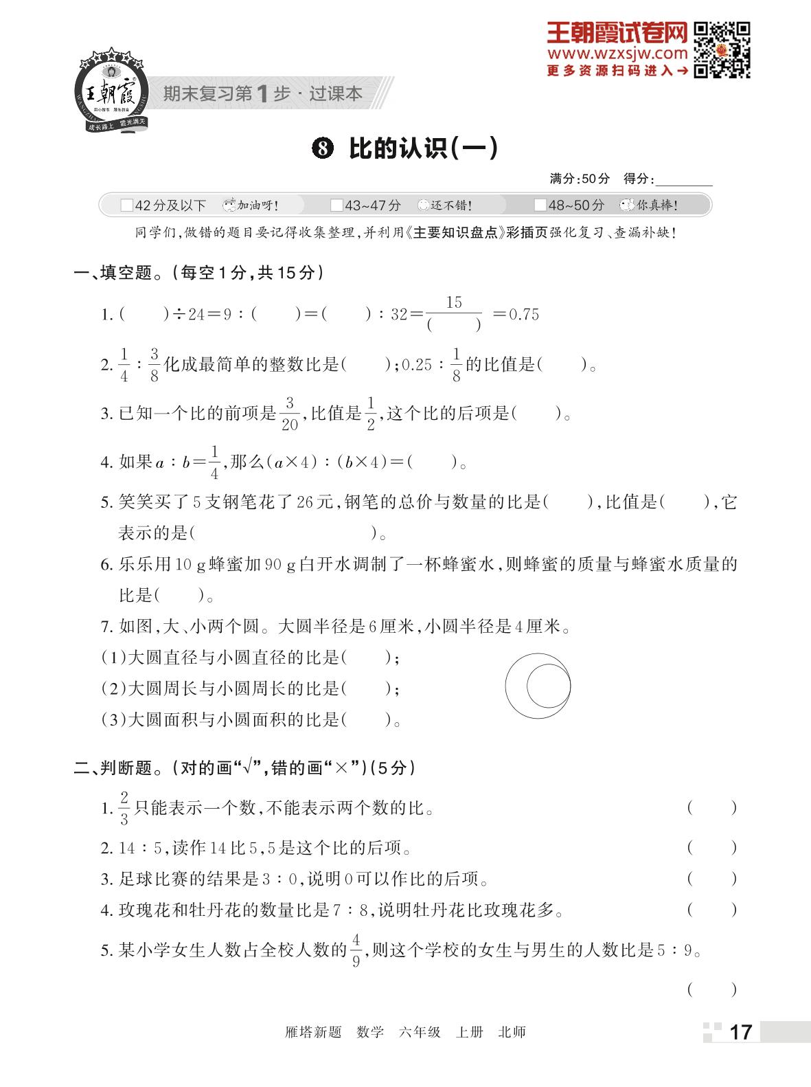 王朝霞期末过课本——8 比的认识(一)六年级上册数学(北师版)_R221123170917859