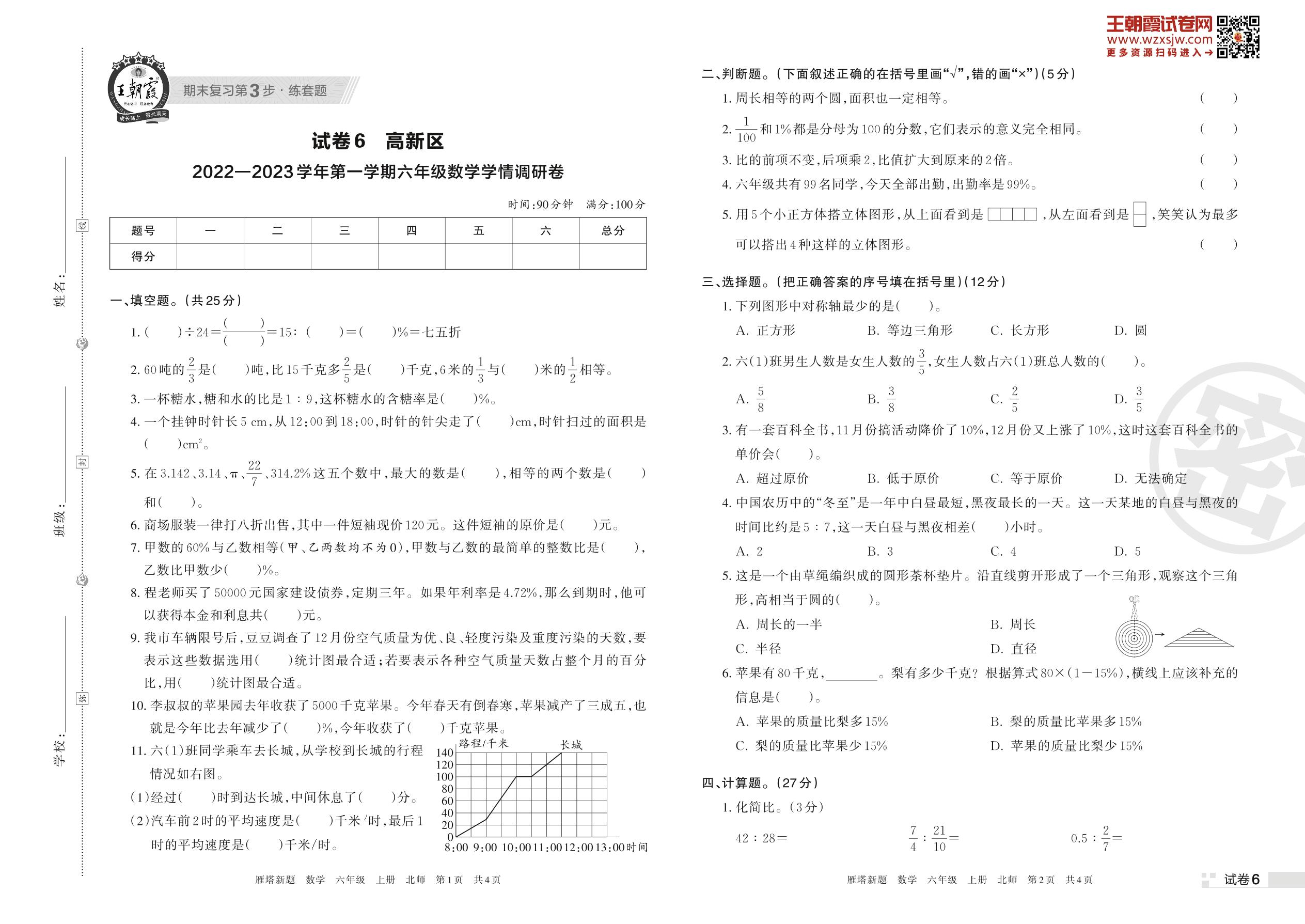 高新区2022—2023学年第一学期学情调研卷六年级上册数学(北师版)【6】