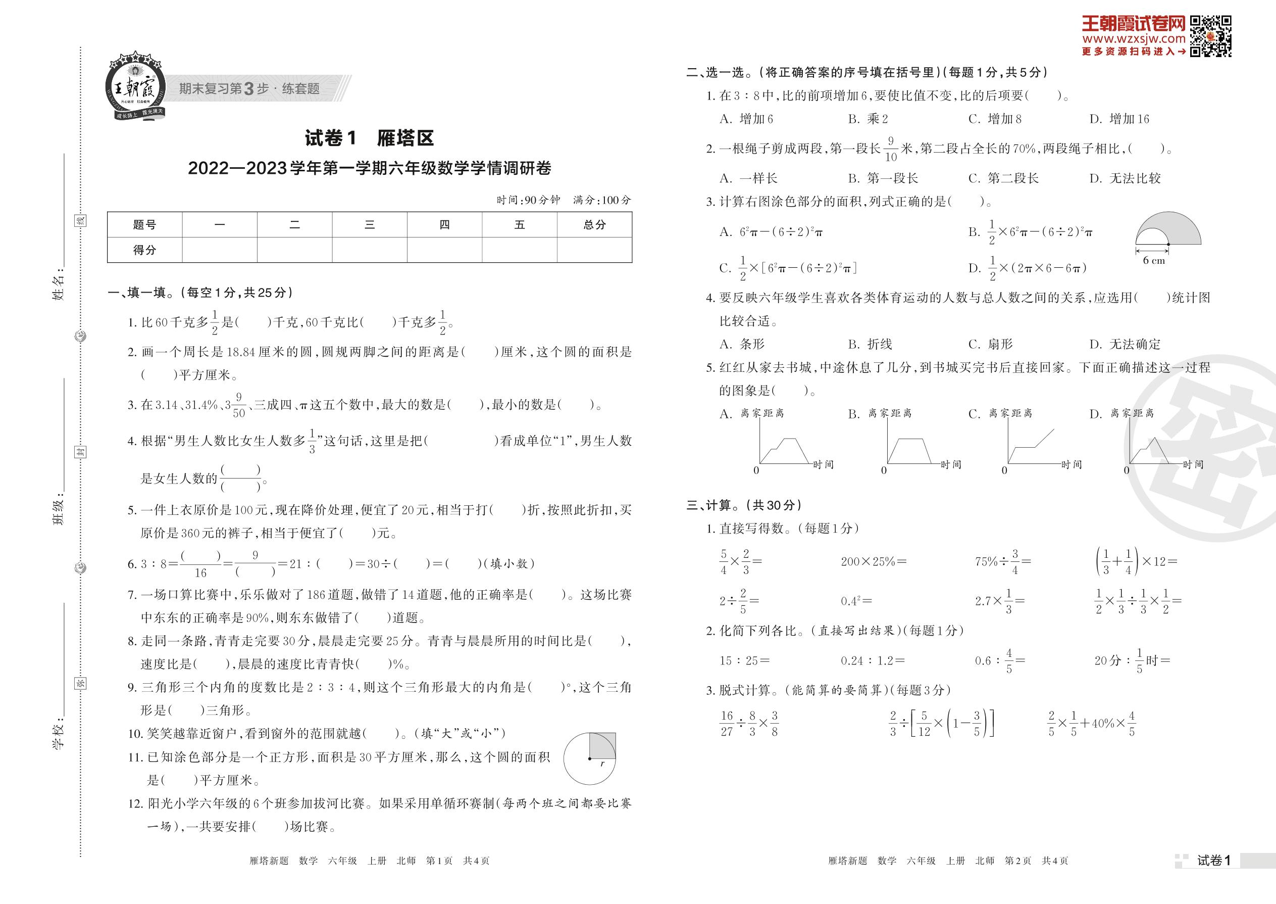 雁塔区2022—2023学年第一学期学情调研卷六年级上册数学(北师版)【1】
