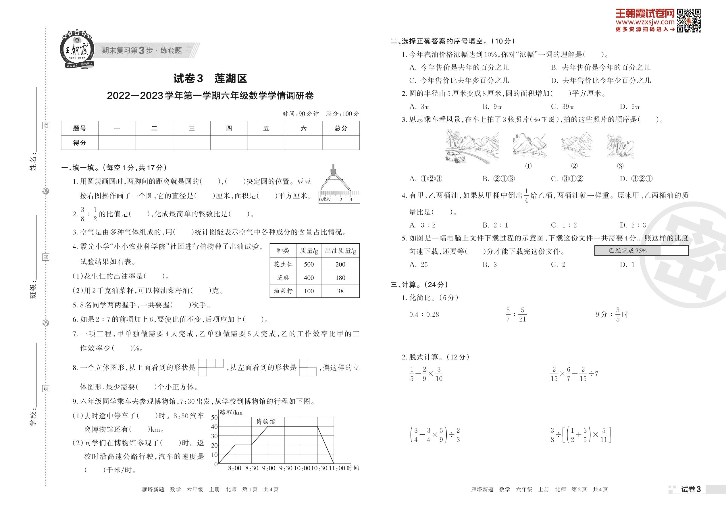 莲湖区2022—2023学年第一学期学情调研卷六年级上册数学(北师版)【3】