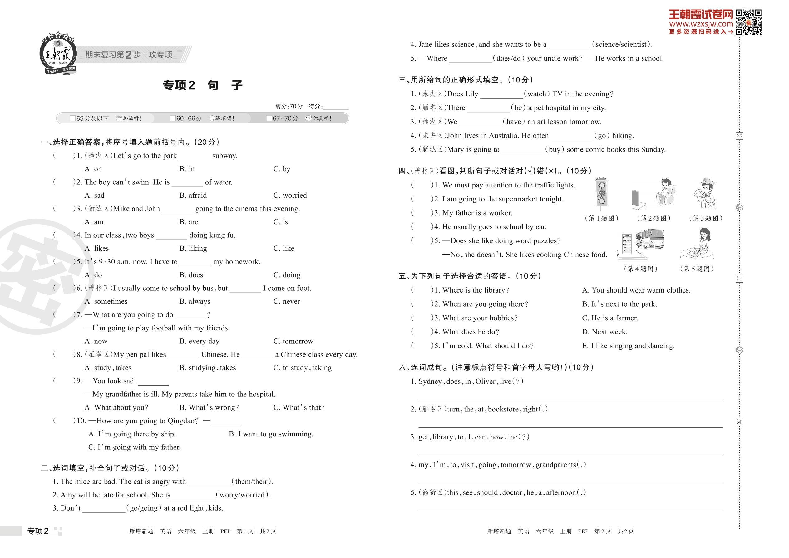 王朝霞期末专项卷——句子六年级上册英语(PEP版)【2】