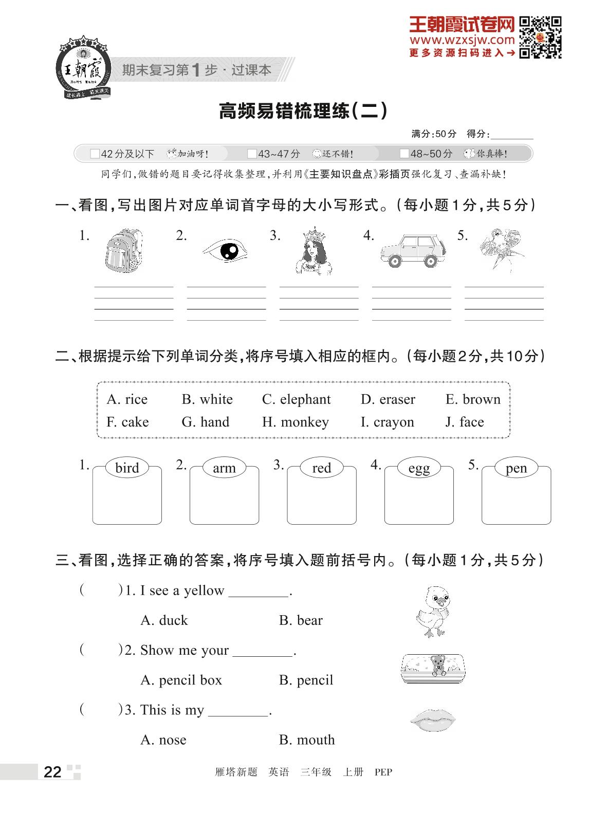 王朝霞期末过课本——高频易错梳理练(二)三年级上册英语(PEP版)_R221123173423790