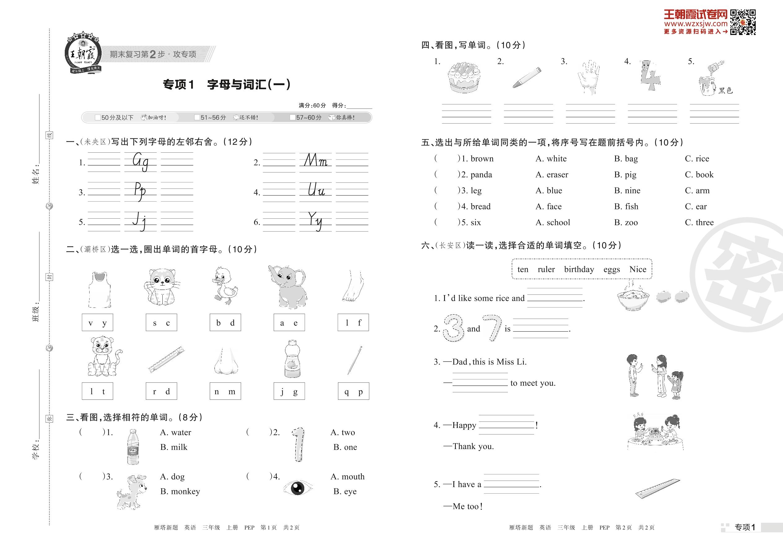 王朝霞期末专项卷——字母与词汇(一)三年级上册英语(PEP版)【1】