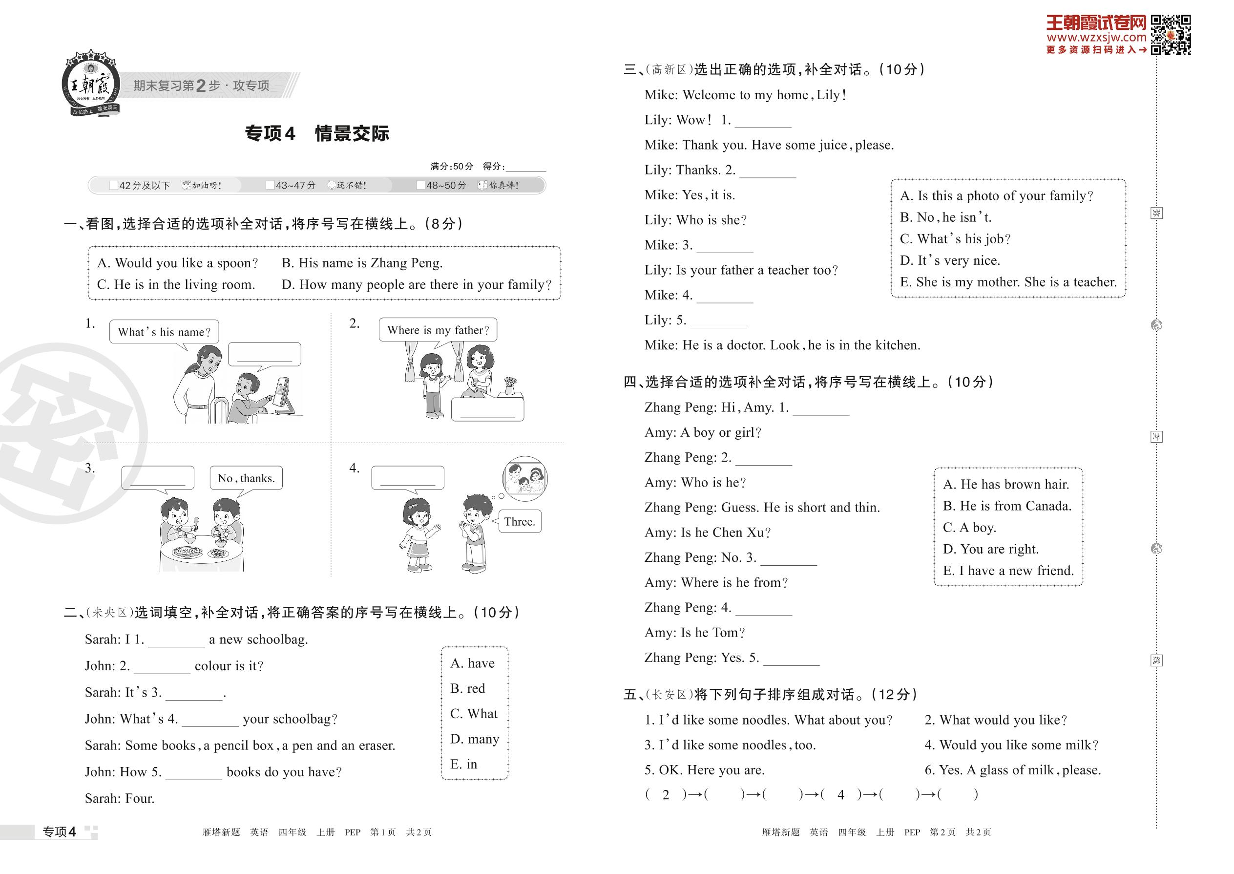 王朝霞期末专项卷——情景交际四年级上册英语(PEP版)_R221123174149977【4】