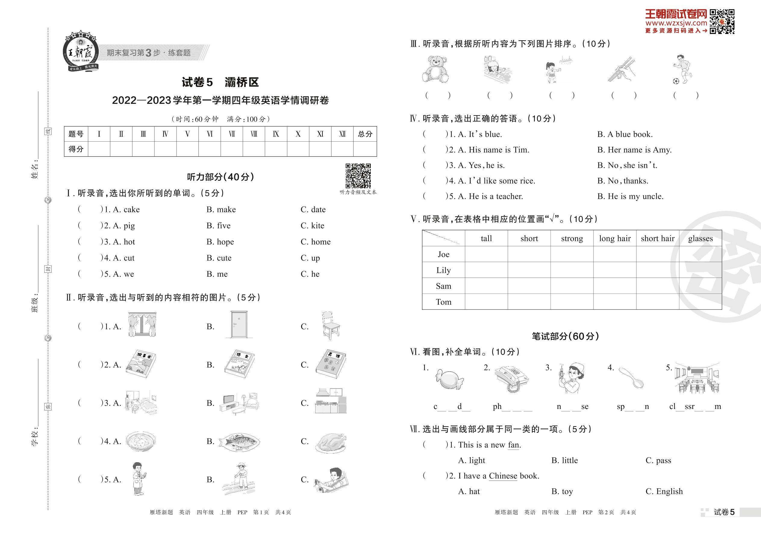 灞桥区2022—2023学年第一学期学情调研卷四年级上册英语(PEP版)【5】