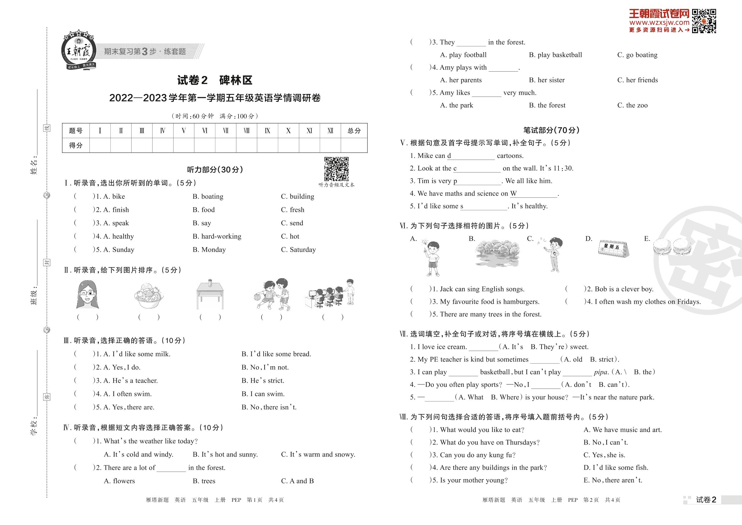碑林区2022—2023学年第一学期学情调研卷五年级上册英语(PEP版)【2】