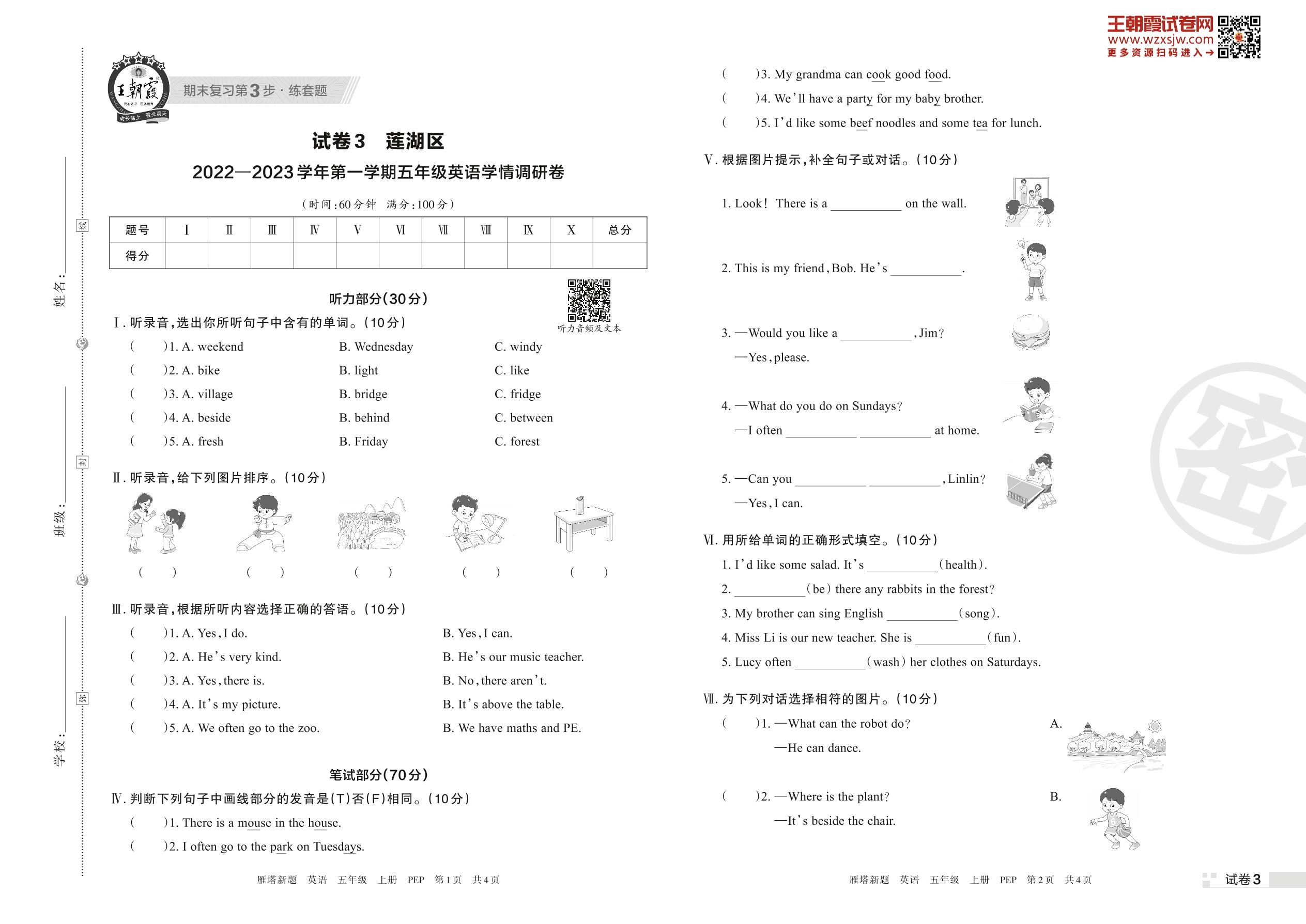 莲湖区2022—2023学年第一学期学情调研卷五年级上册英语(PEP版)【3】