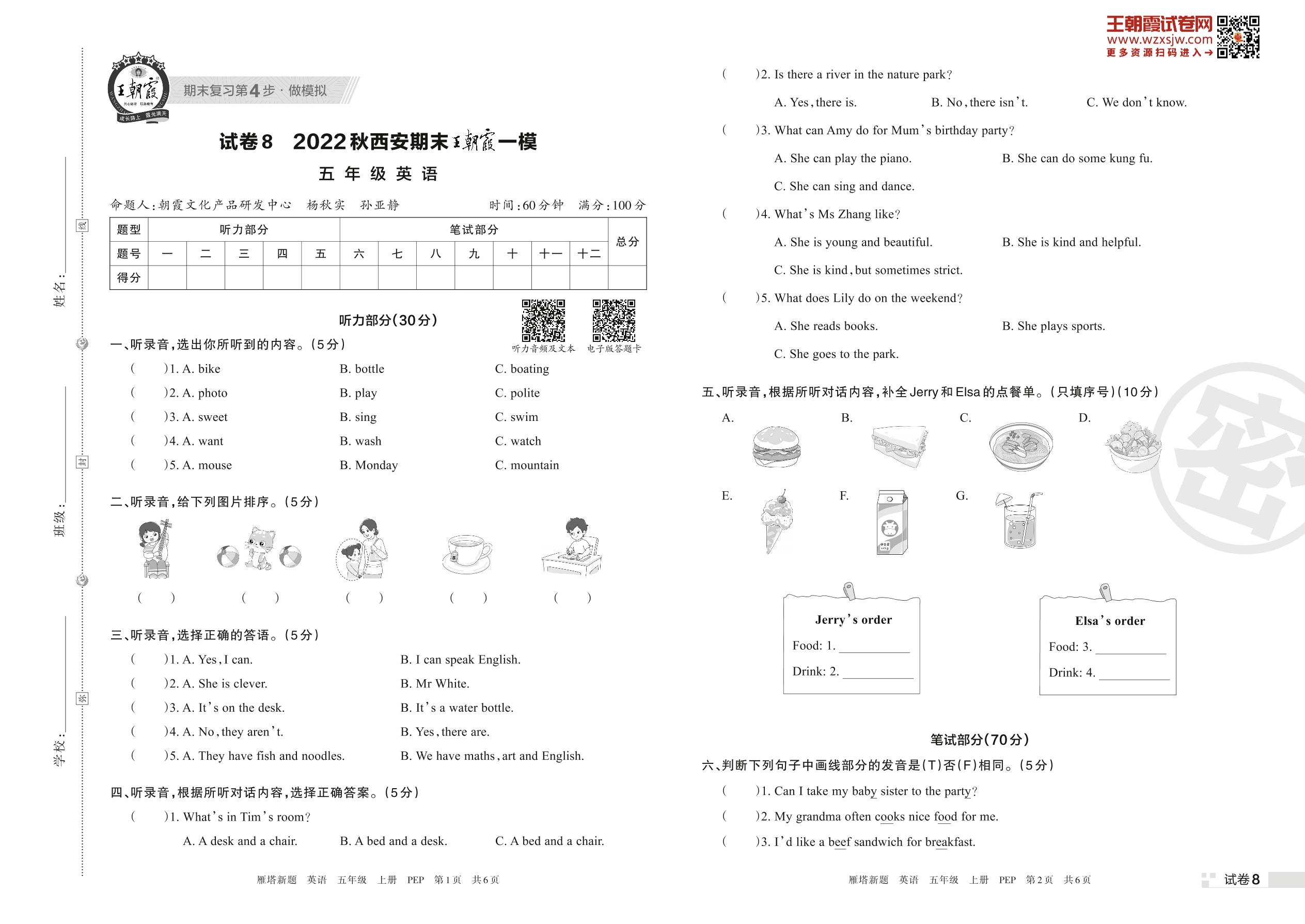王朝霞期末模拟卷五年级上册英语(PEP版)_R221123175740323【8】