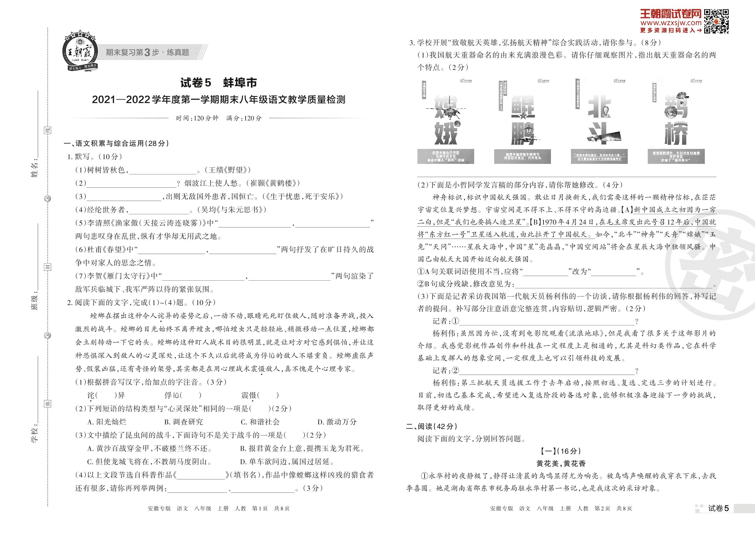 蚌埠市2021-2022学年度第一学期八年级语文教学质量检测(人教版)【5】