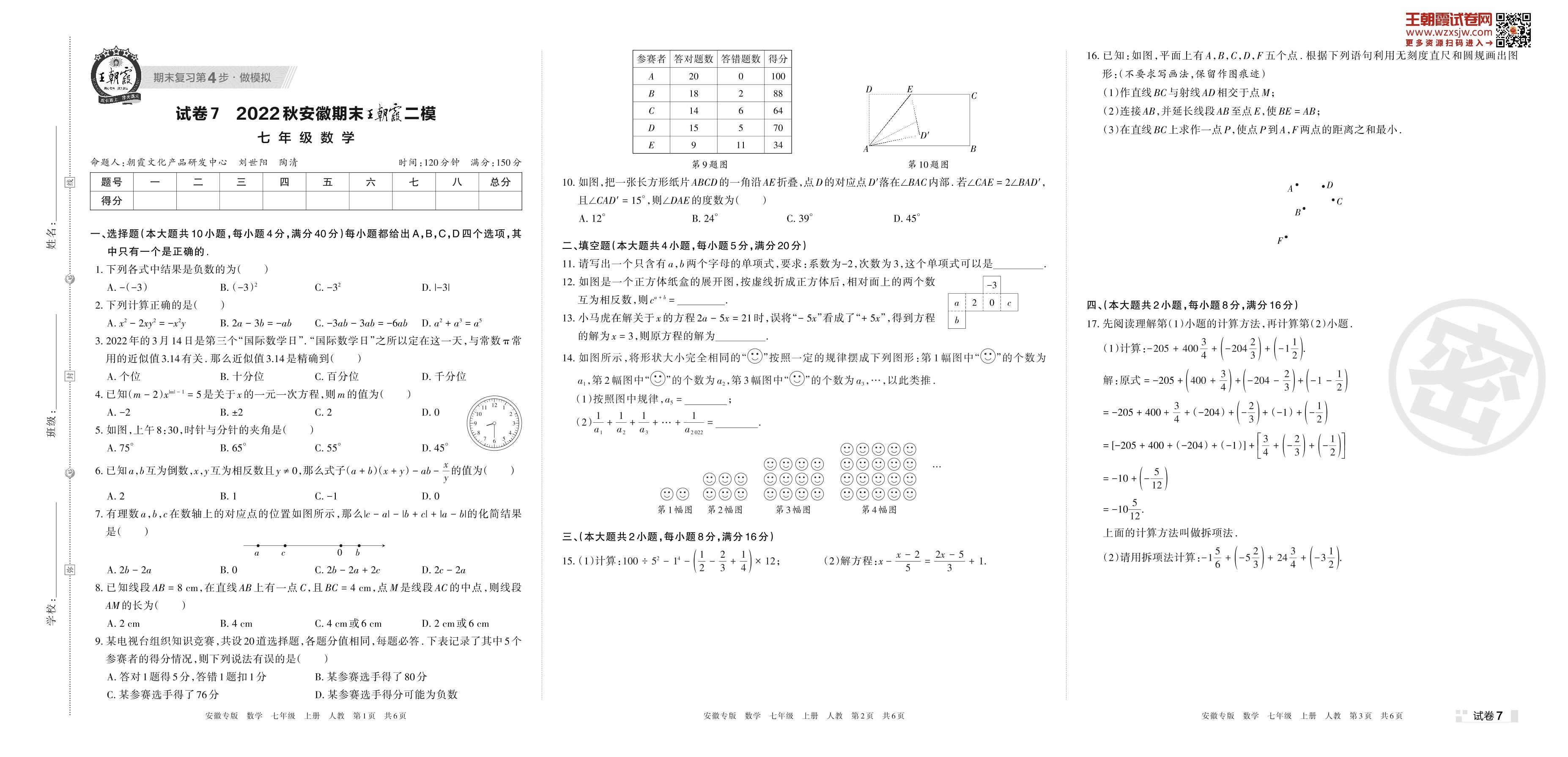 王朝霞期末模拟卷七年级上册数学(人教版)_R221123232314307【7】