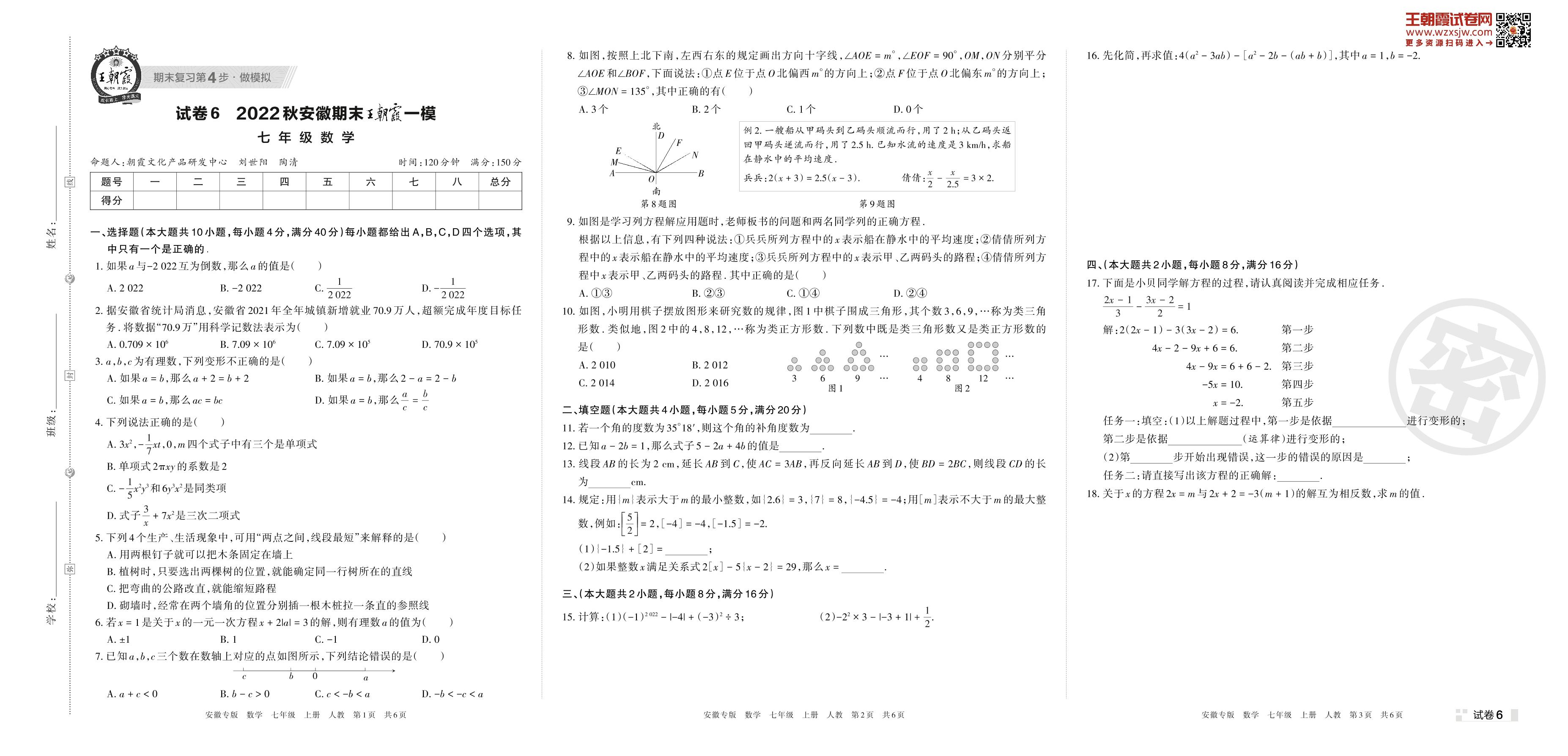 王朝霞期末模拟卷七年级上册数学(人教版)_R221123232315841【6】