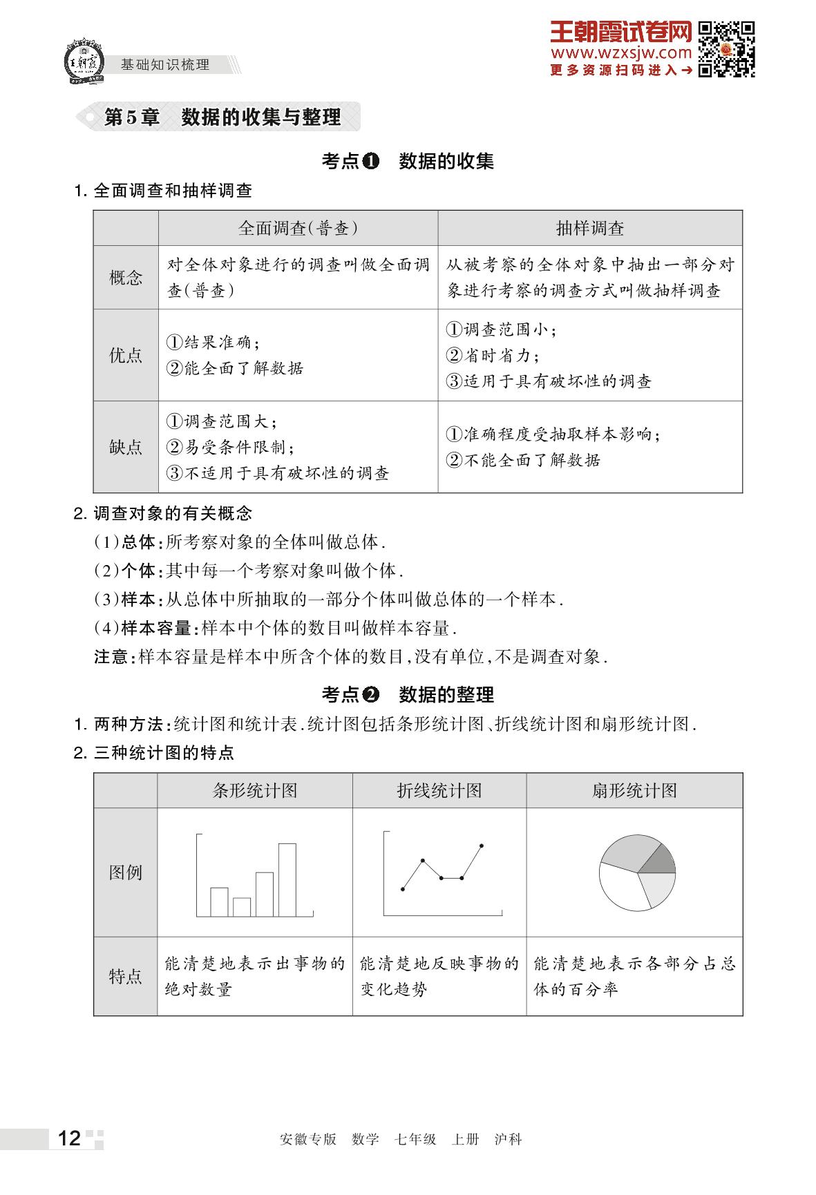 王朝霞期末知识梳理——第5章 数据的收集与整理七年级上册数学(沪科版)