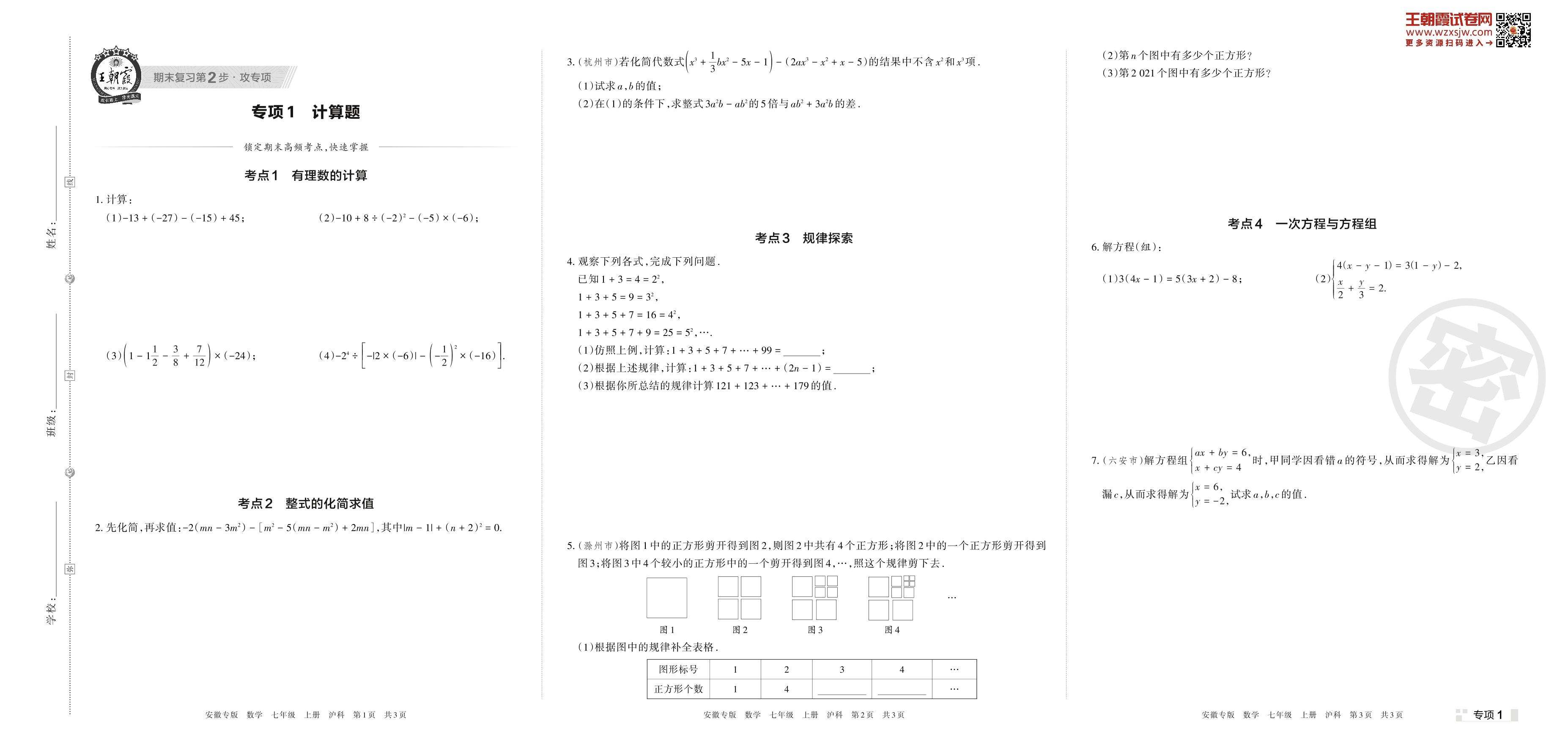 七年级数学沪科版上册专项卷