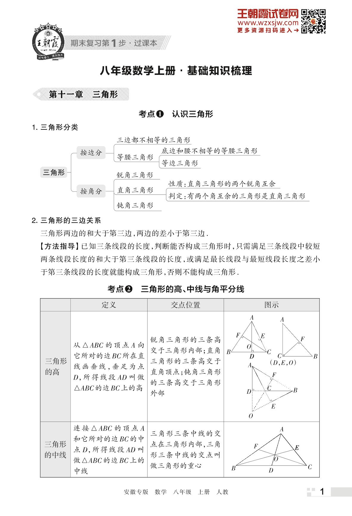 王朝霞期末知识梳理——第十一章 三角形八年级上册数学(人教版)