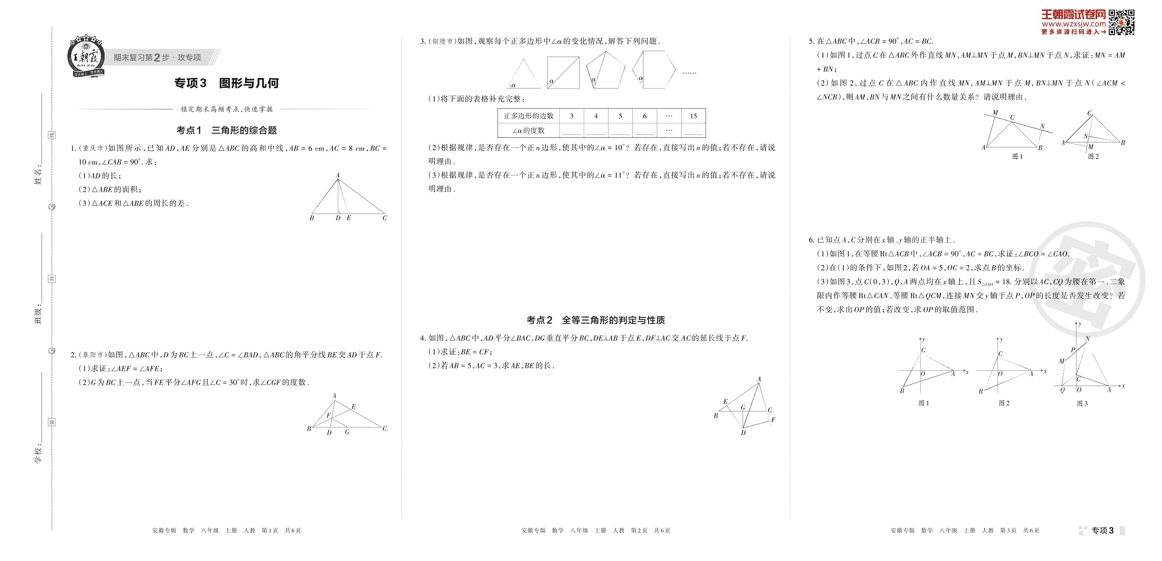 王朝霞期末专项卷——图形与几何八年级上册数学(人教版)_R221123233726331【3】