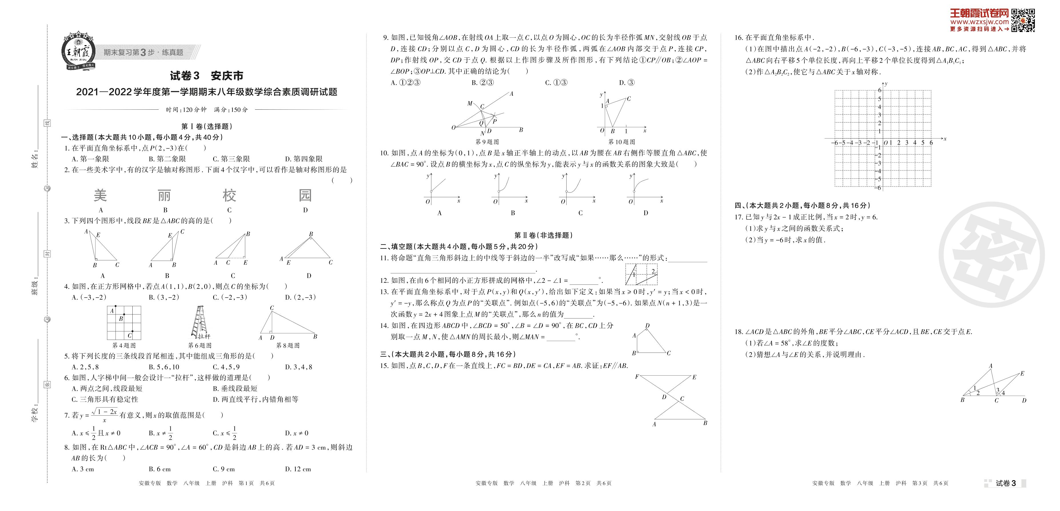 安庆市2021—2022学年度第一学期期末八年级数学综合素质调研试题(沪科版)【3】