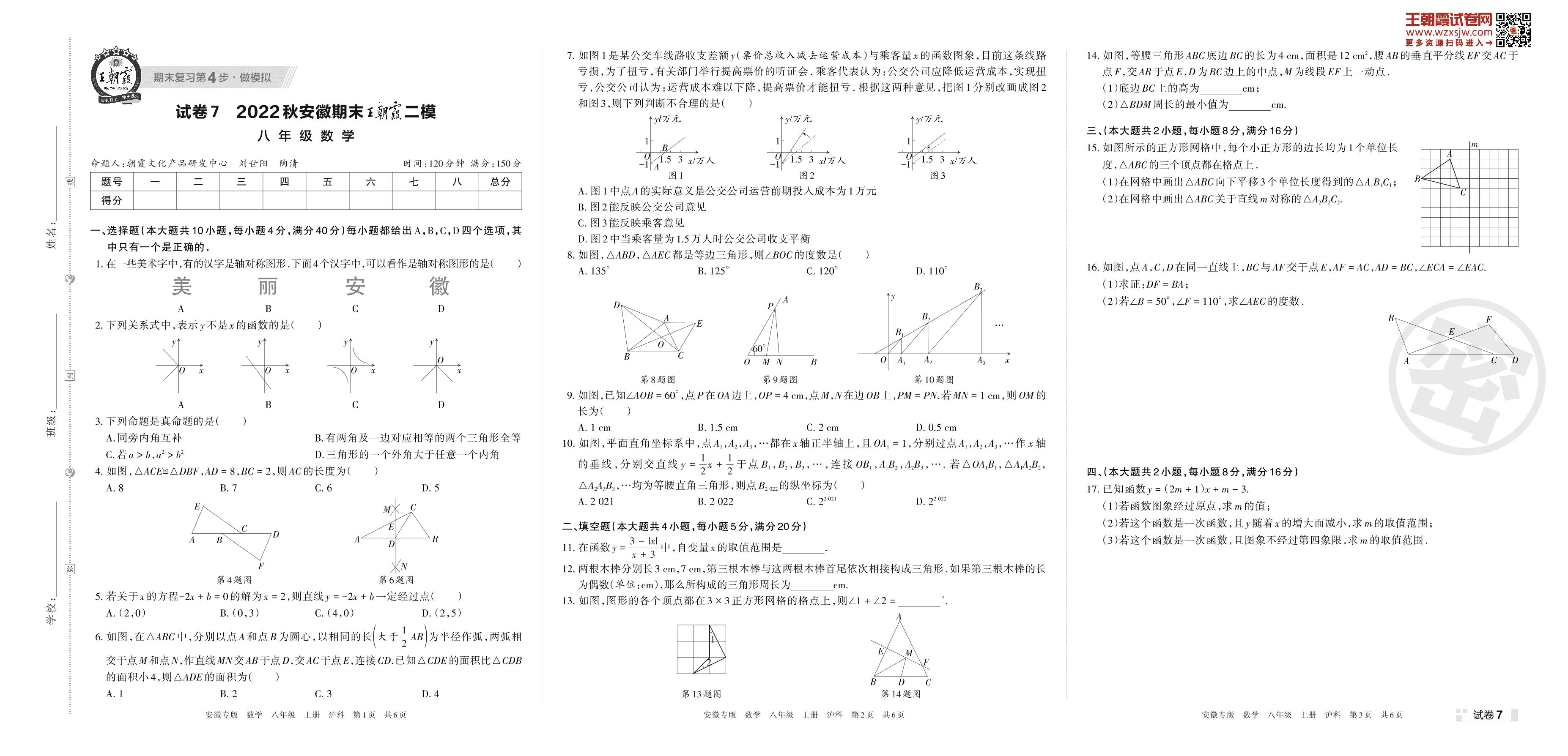 王朝霞期末模拟卷八年级上册数学(沪科版)_R221123234311261【7】