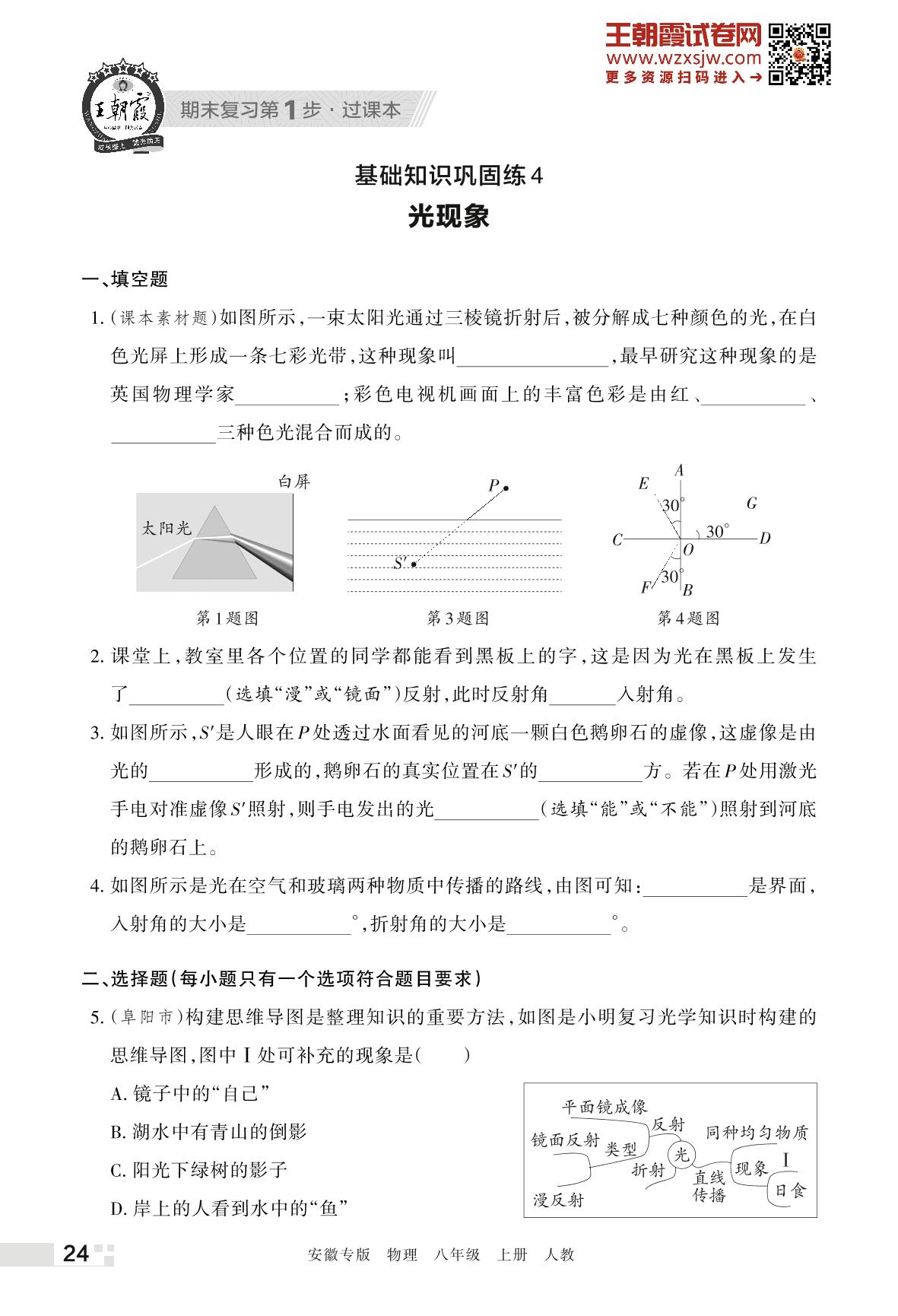王朝霞期末过课本——基础知识巩固练4 光现象八年级上册物理(人教版)