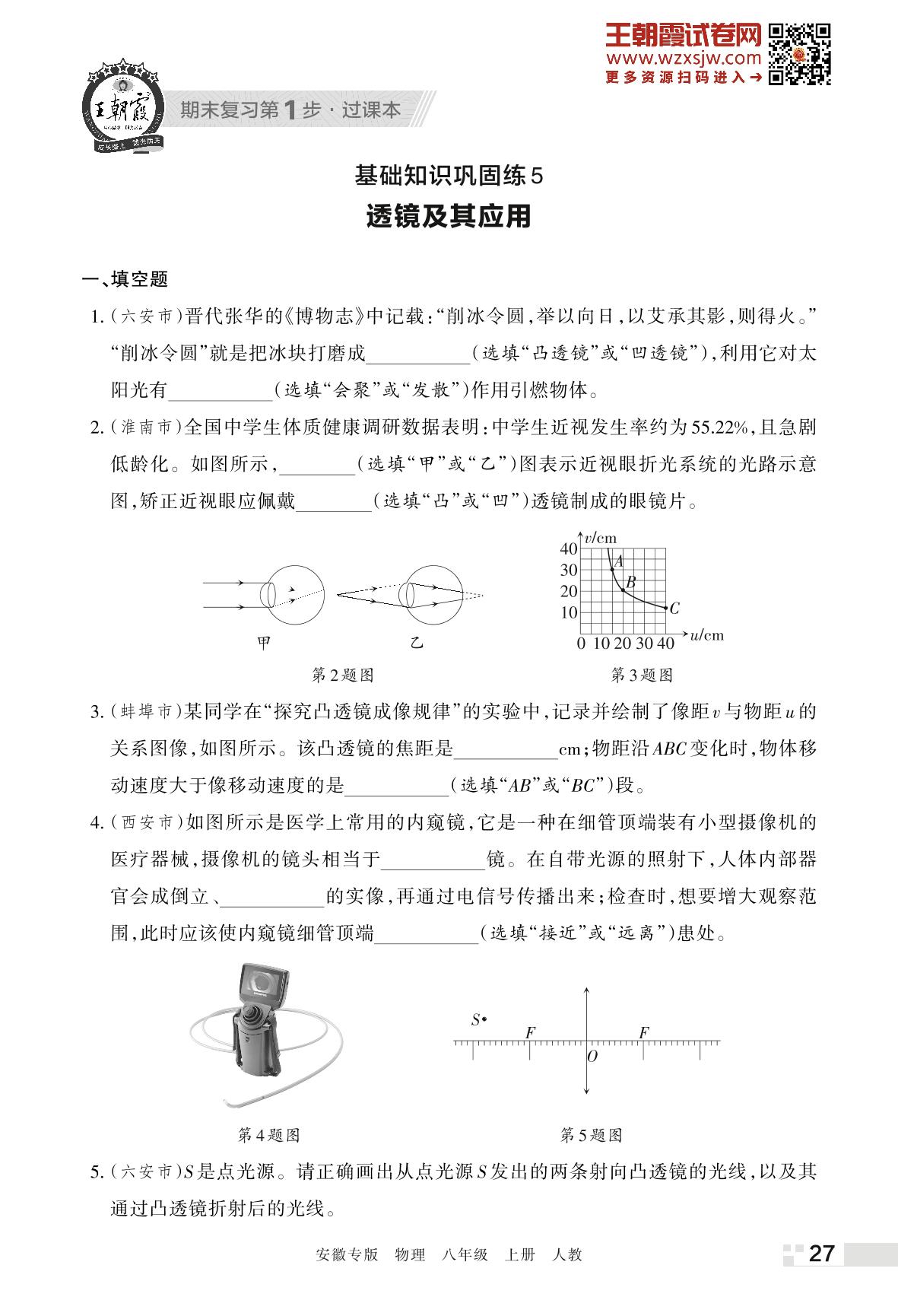 王朝霞期末过课本——基础知识巩固练5 透镜及其运用八年级上册物理(人教版)