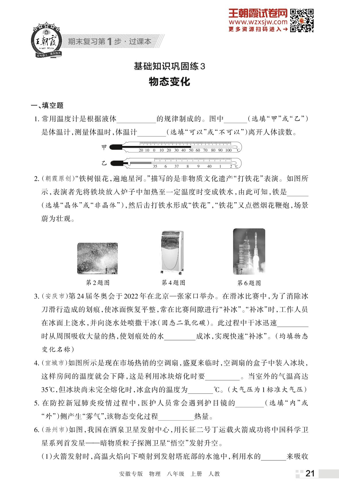王朝霞期末过课本——基础知识巩固练3 物态变化八年级上册物理(人教版)