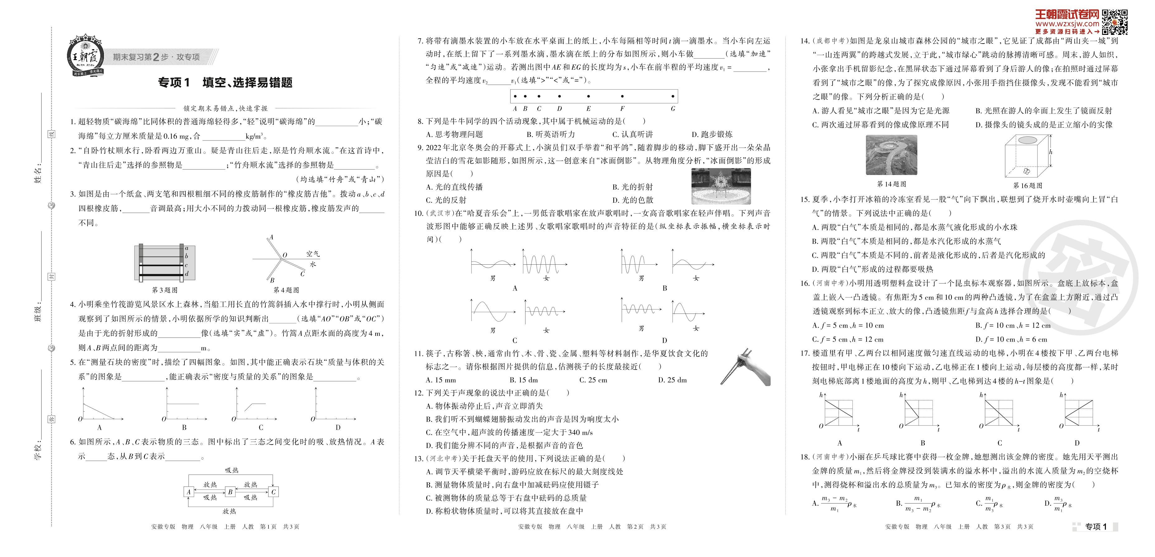 王朝霞期末专项卷——填空、选择易错题八年级上册物理(人教版)_R221123234922621【1】