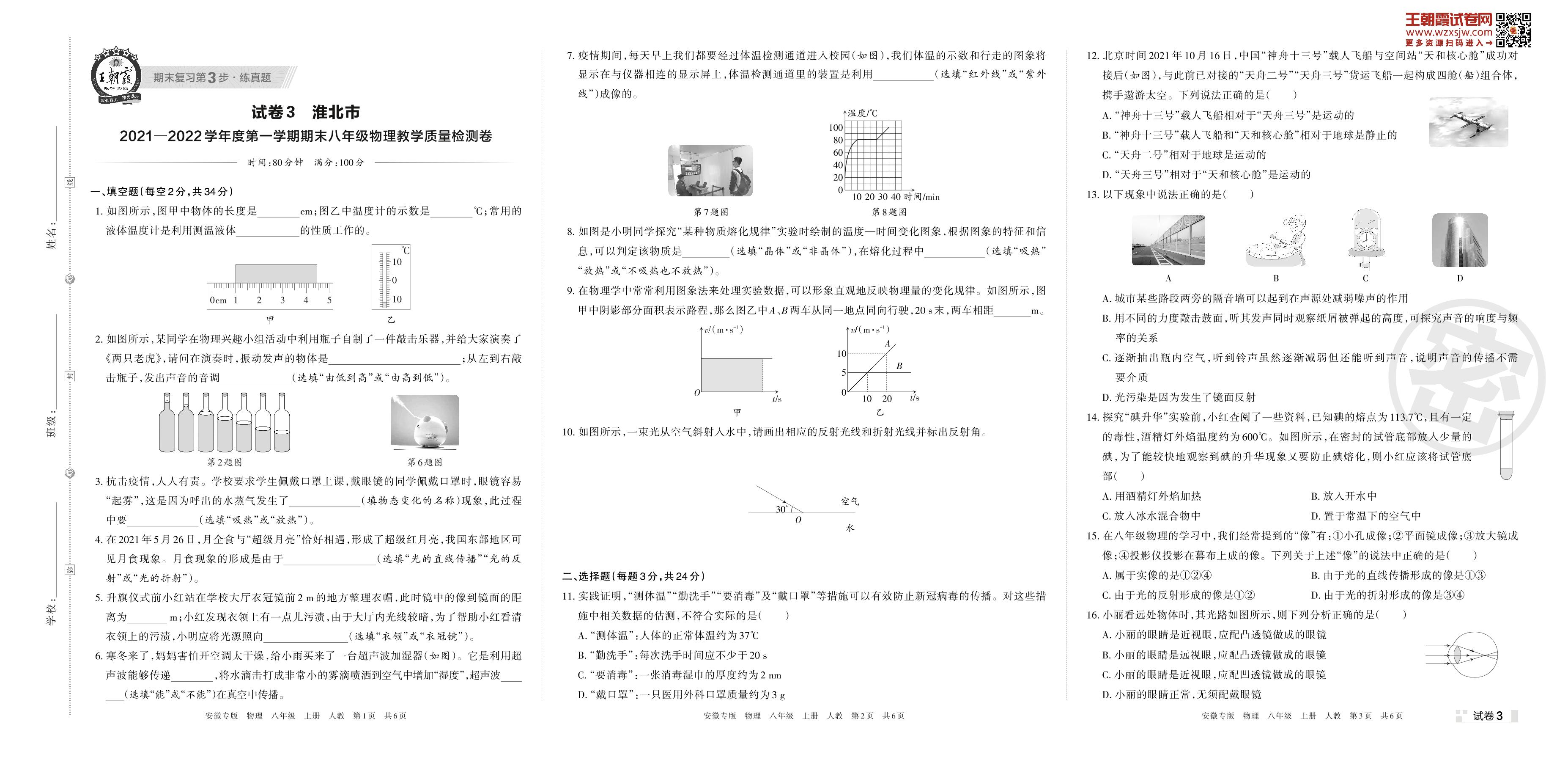 淮北市2021-2022学年度第一学期期末八年级物理教学质量检测试题卷(人教版)【3】