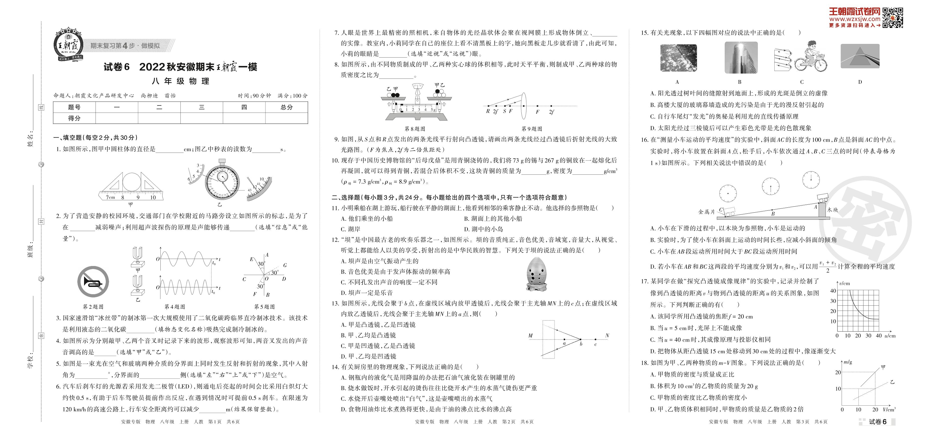 王朝霞期末模拟卷八年级上册物理(人教版)_R221123234923235【6】