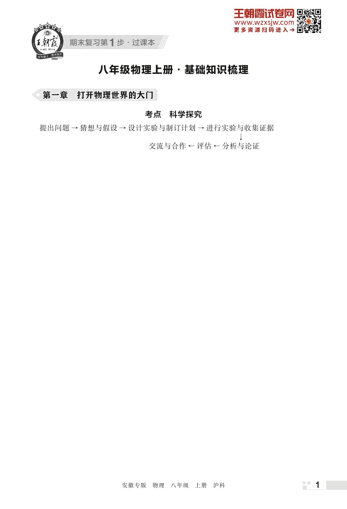 王朝霞期末知识梳理——第一章 打开物理世界的大门八年级上册物理(沪科版)