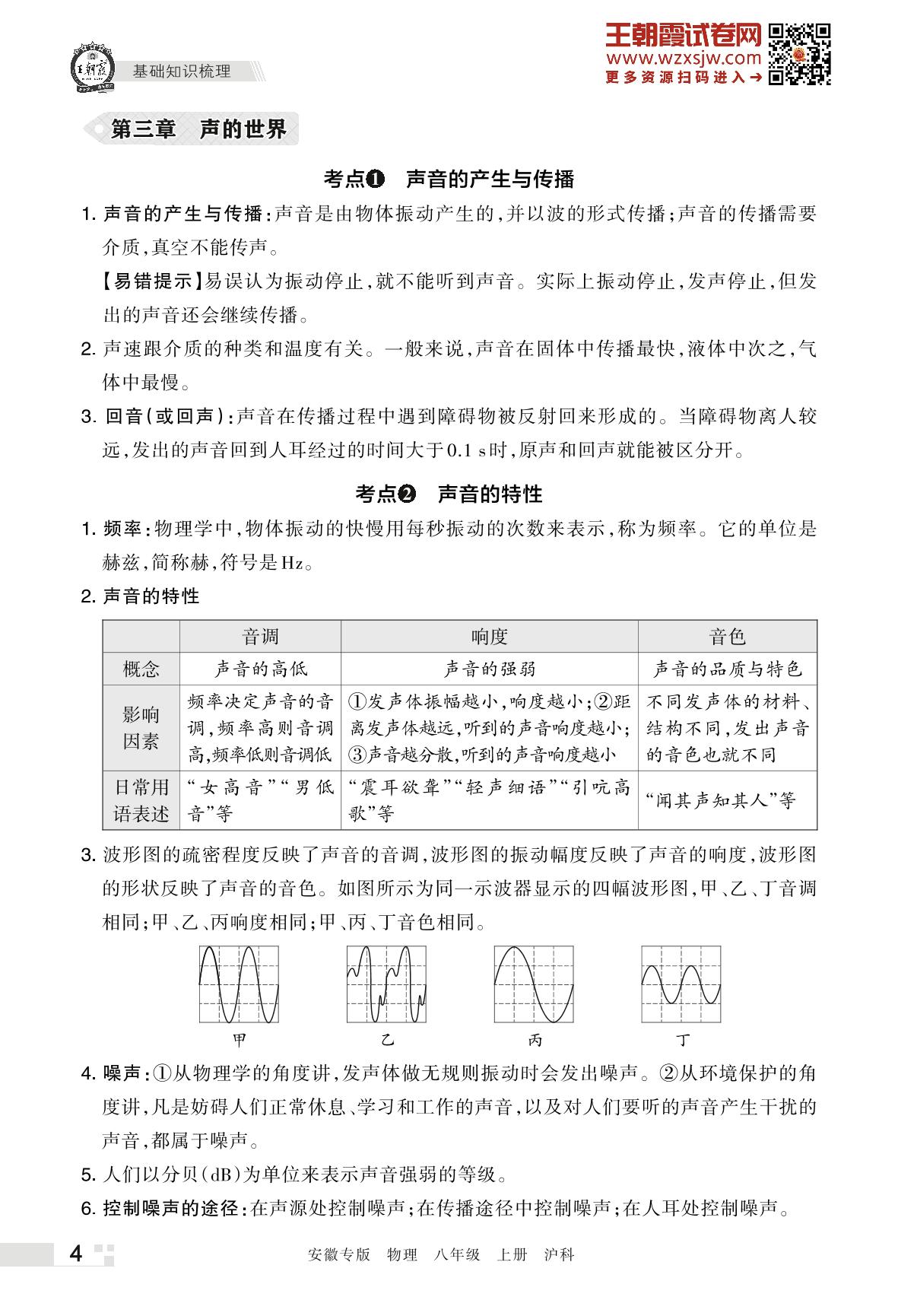 王朝霞期末知识梳理——第三章 声的世界八年级上册物理(沪科版)