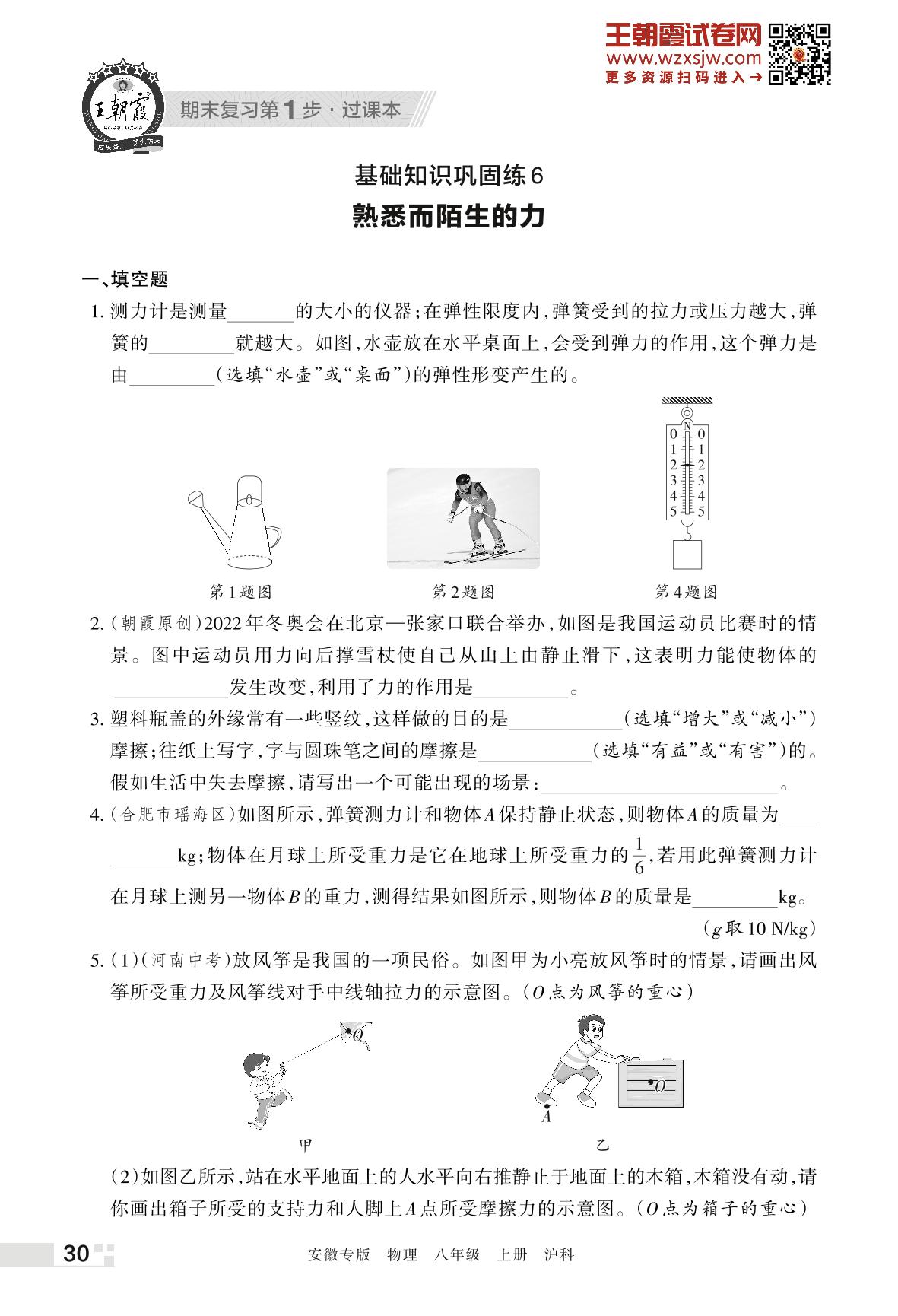 王朝霞期末过课本——基础知识巩固练6 陌生而熟悉的力八年级上册物理(沪科版)