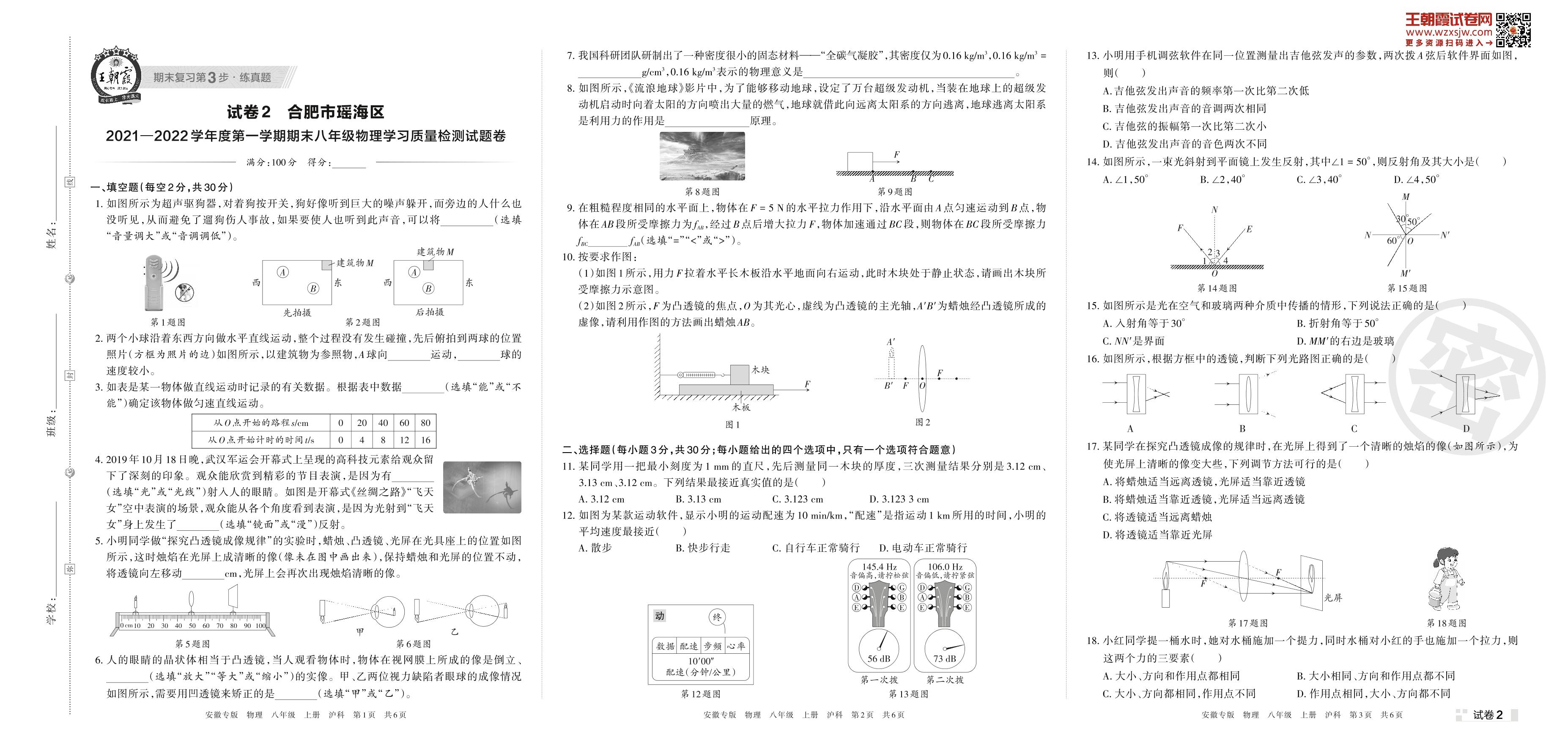 合肥市瑶海区2021—2022学年度第一学期期末八年级物理质量检测试卷(沪科版)【2】