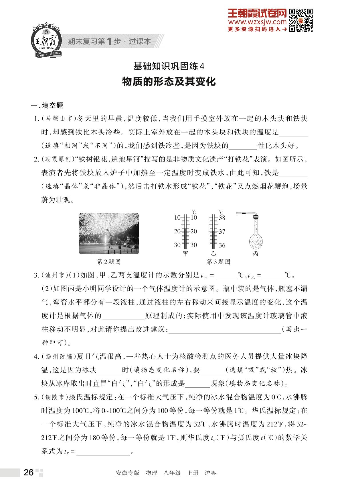 王朝霞期末过课本——基础知识巩固练4 物质的形态及其变化八年级上册物理(沪粤版)