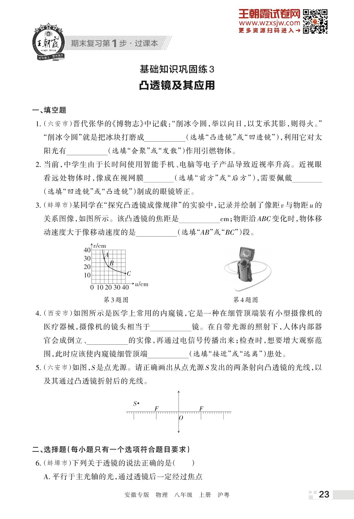 王朝霞期末过课本——基础知识巩固练3 凸透镜及其应用八年级上册物理(沪粤版)