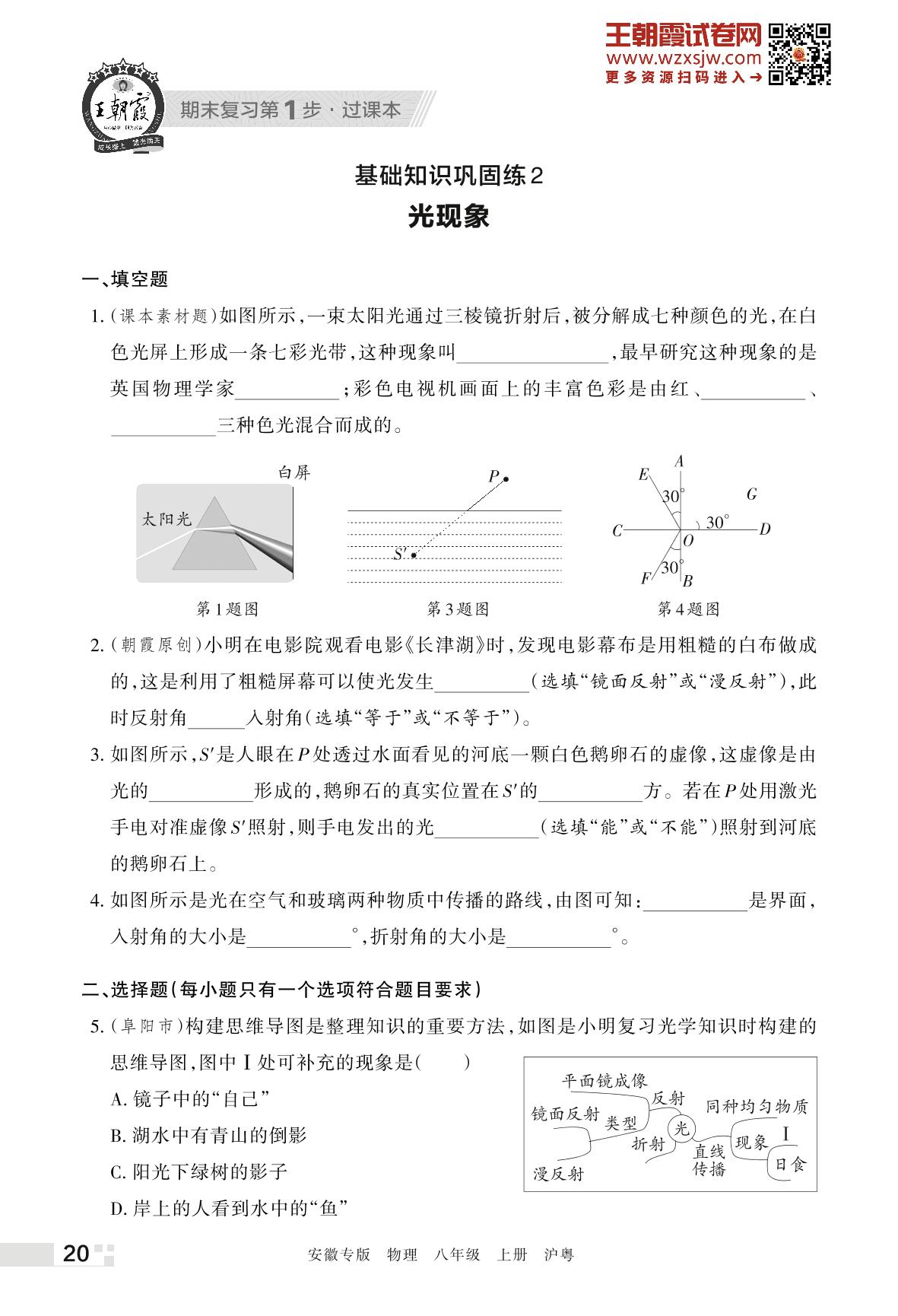王朝霞期末过课本——基础知识巩固练2 光现象八年级上册物理(沪粤版)