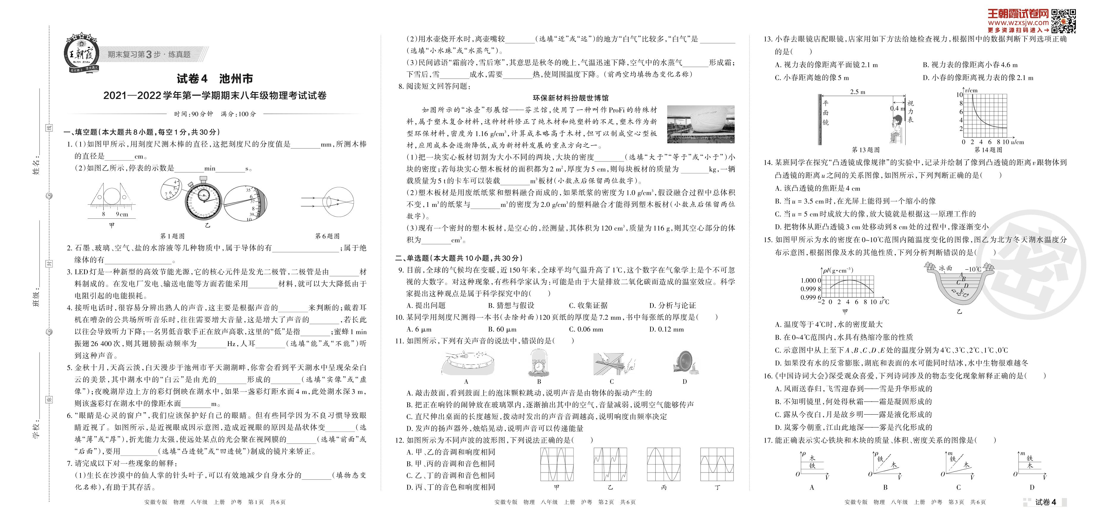 池州市2021—2022学年度第一学期期末八年级物理考试试卷(沪粤版)【4】