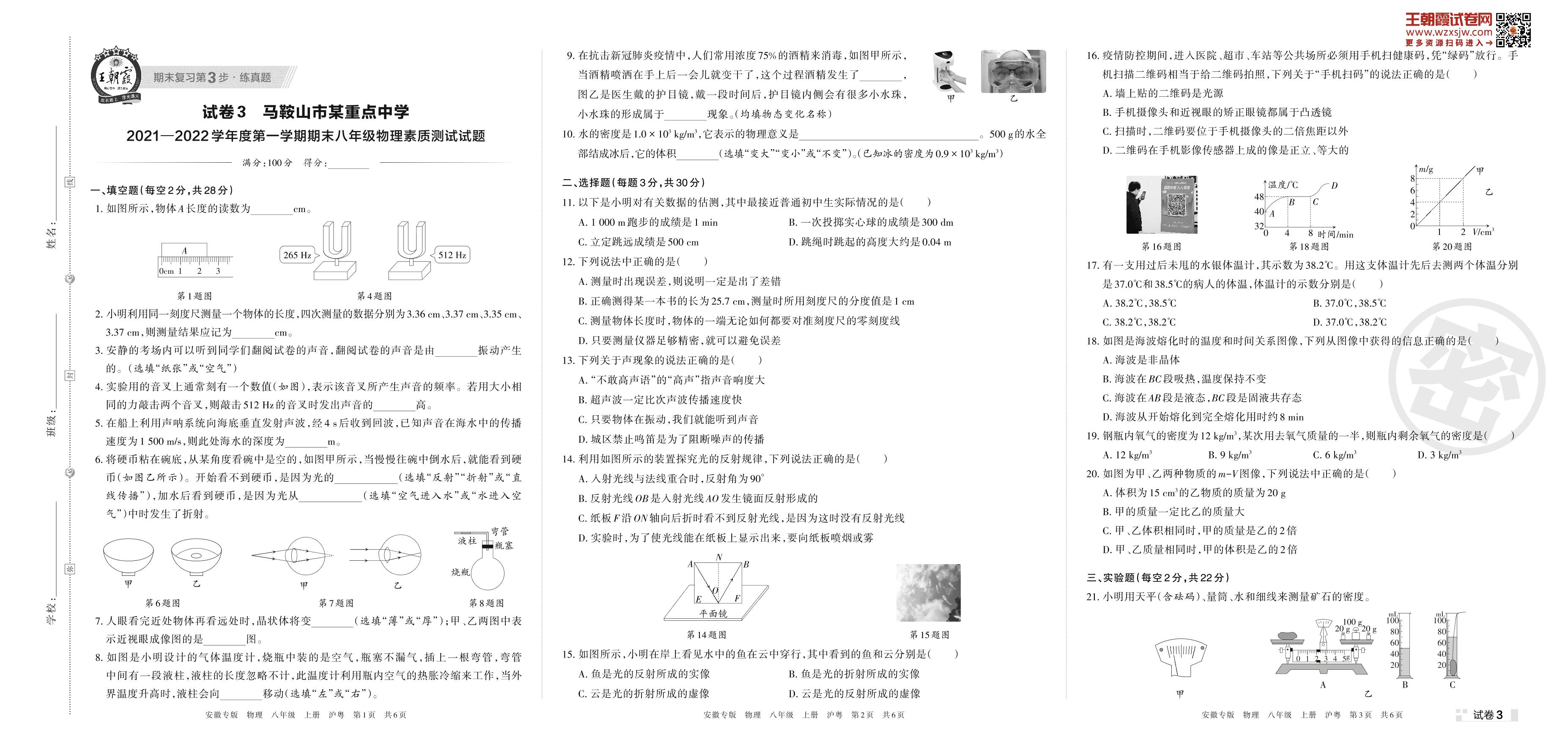 马鞍市某重点中学2021—2022学年度第一学期期末八年级物理素质测试试题(沪粤版)【3】