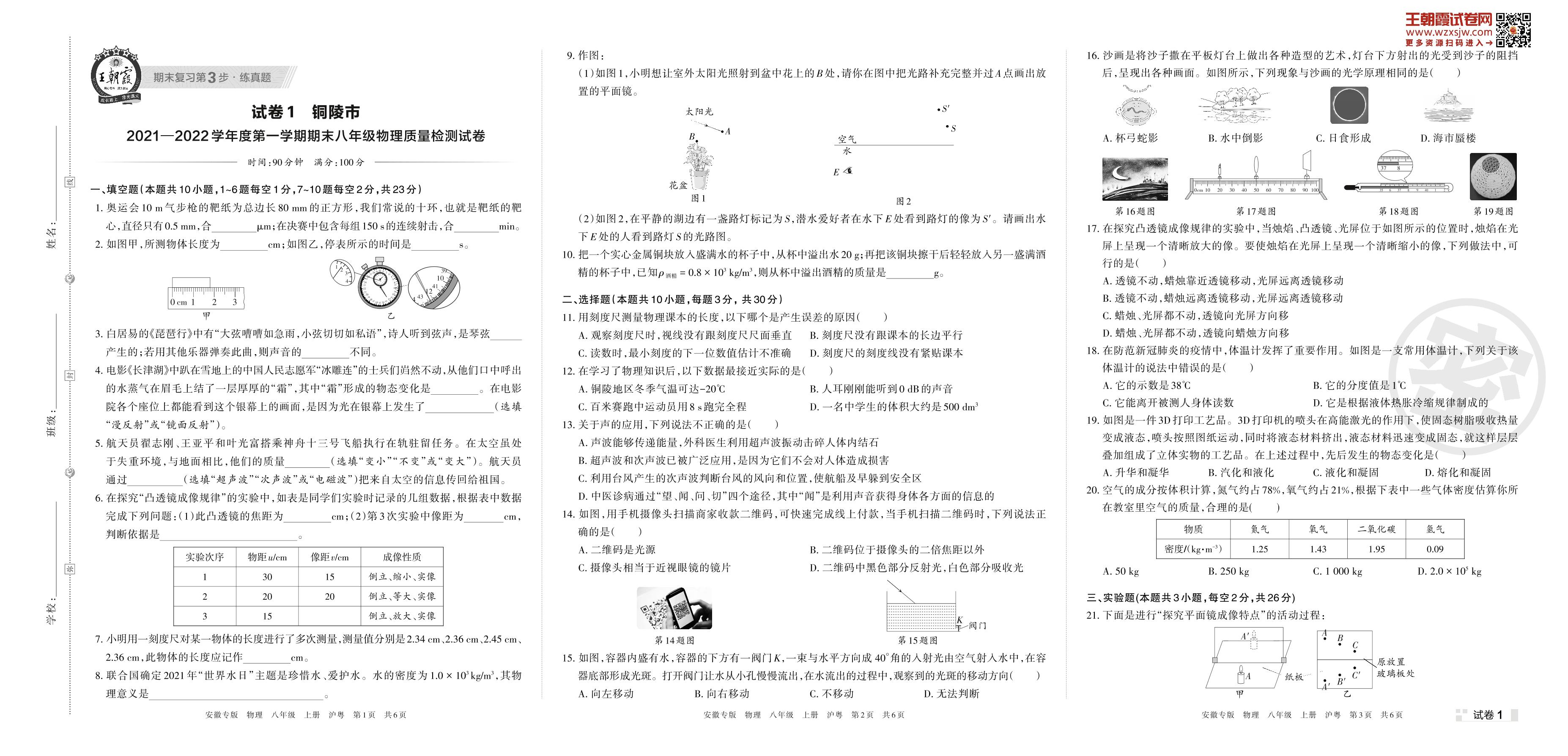 铜陵市2021—2022学年度第一学期期末八年级物理质量检测试卷(沪粤版)【1】