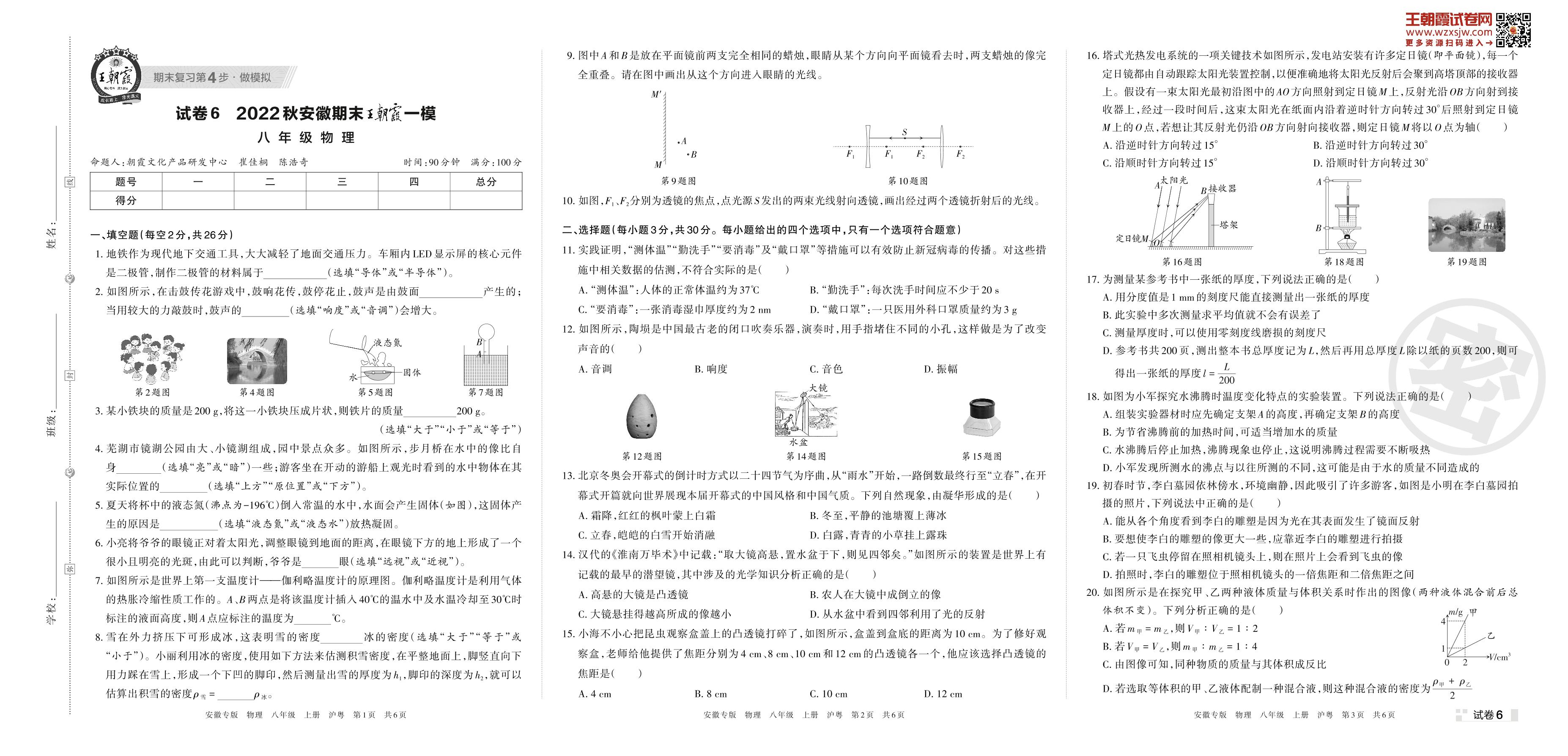 王朝霞期末模拟卷八年级上册物理(沪粤版)_R221124000235493【6】