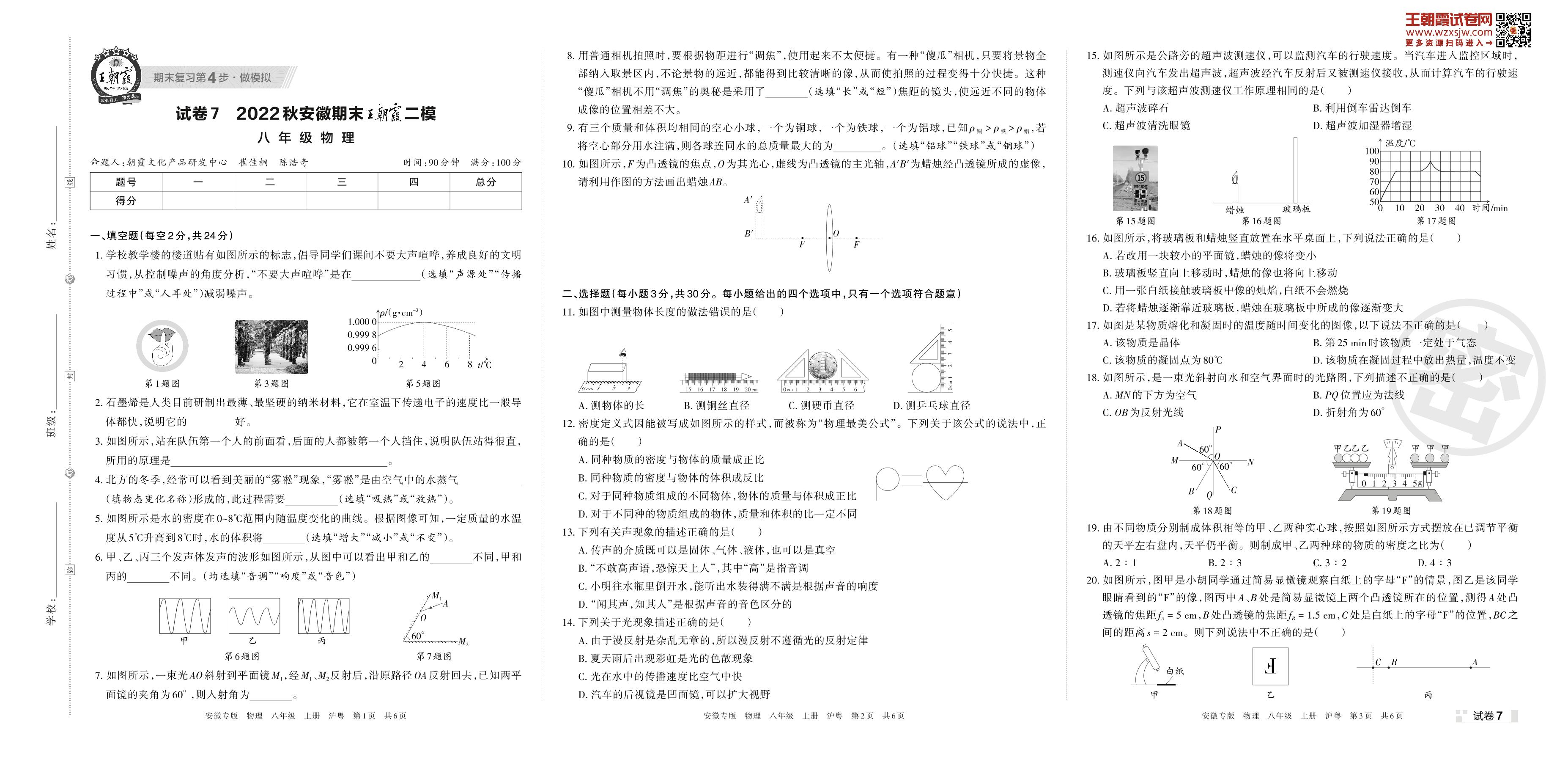 王朝霞期末模拟卷八年级上册物理(沪粤版)_R221124000236046【7】