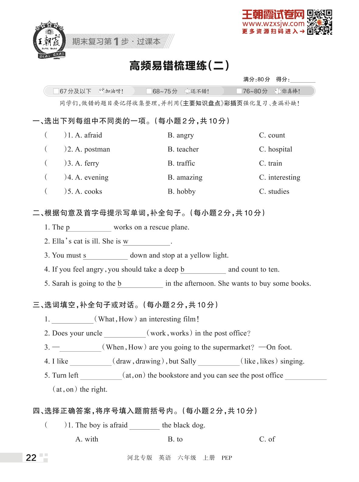 王朝霞期末过课本——高频易错梳理练(二)六年级上册英语(PEP版)_R221124100513125