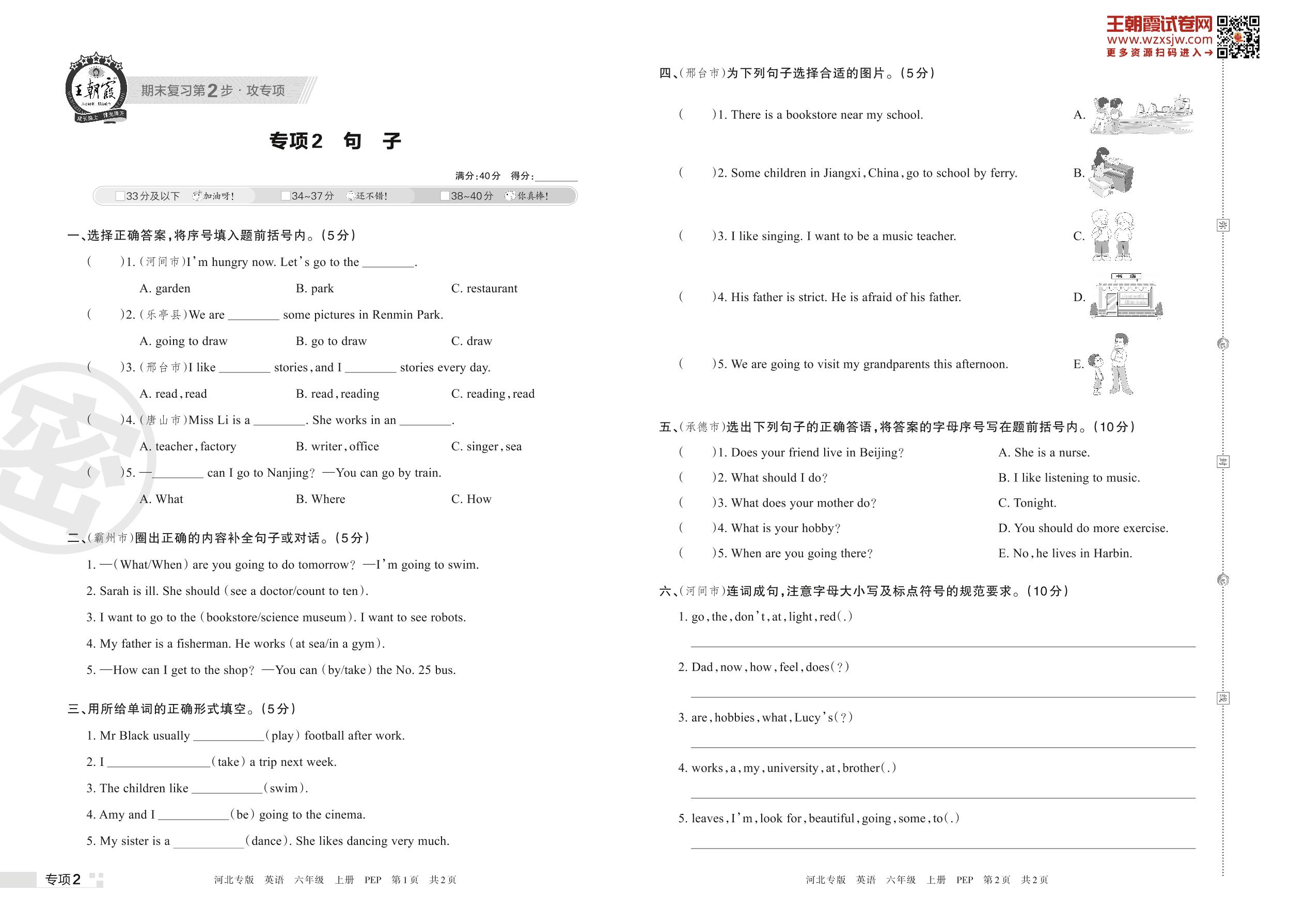 王朝霞期末专项卷——句子六年级上册英语(PEP版)_R221124100514785【2】