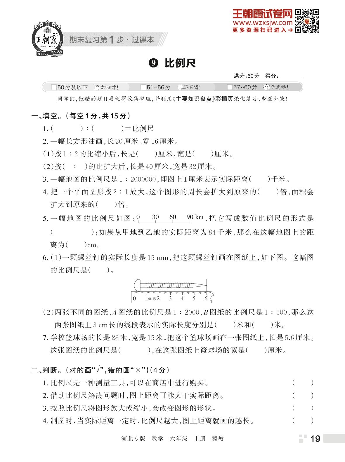 王朝霞期末过课本——9 比例尺六年级上册数学(冀教版)