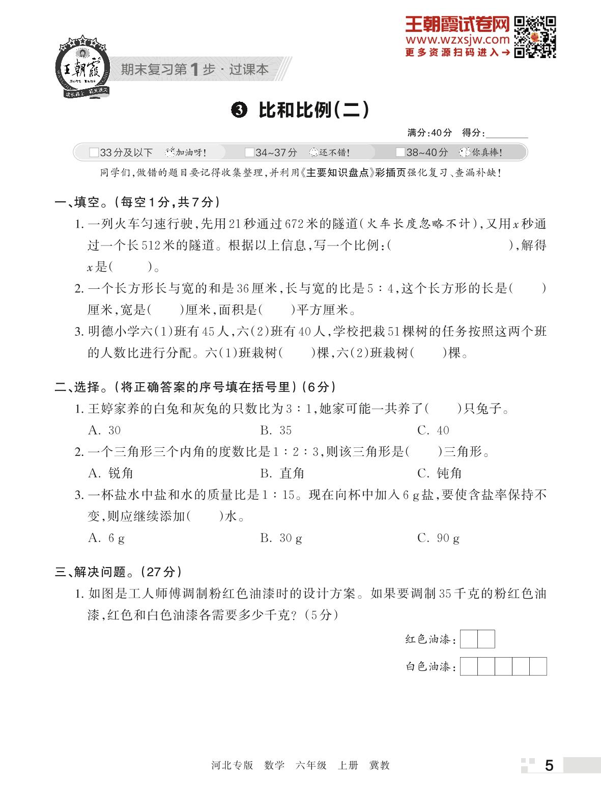 王朝霞期末过课本——3 比和比例(二)六年级上册数学(冀教版)