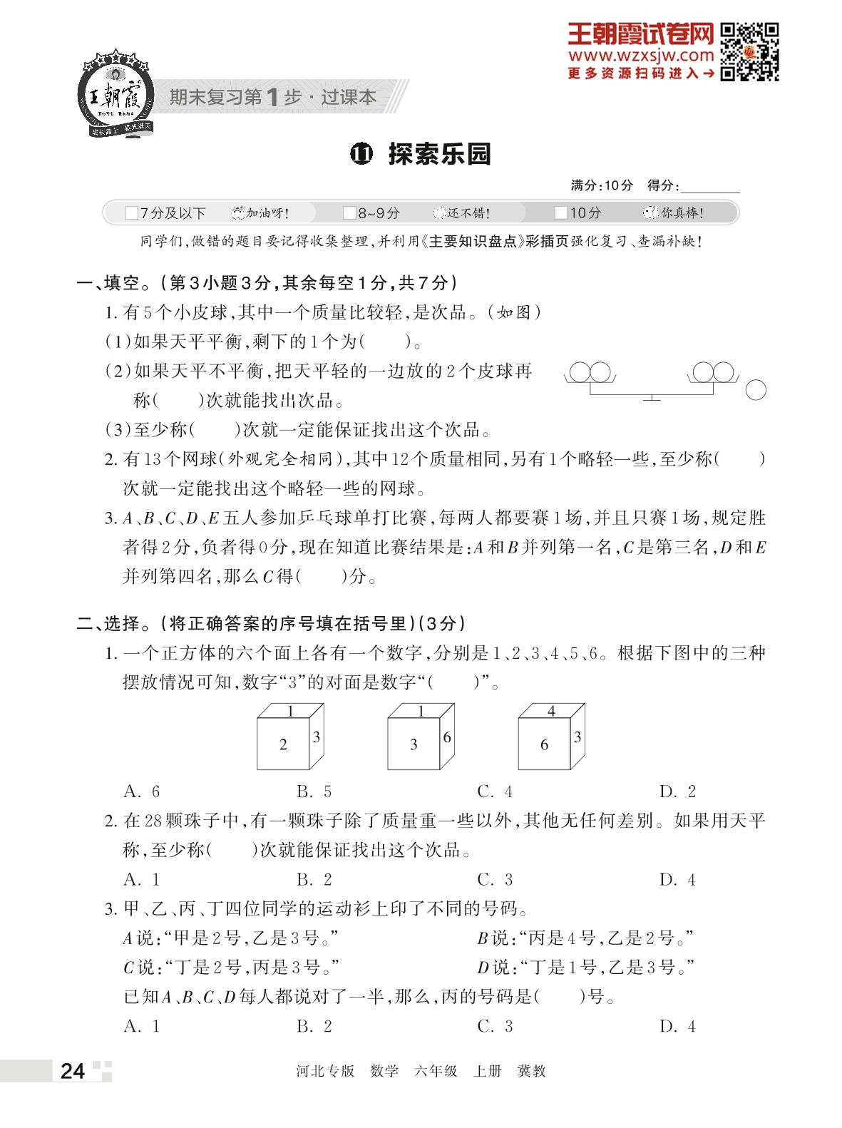 王朝霞期末过课本——11 探索乐园六年级上册数学(冀教版)