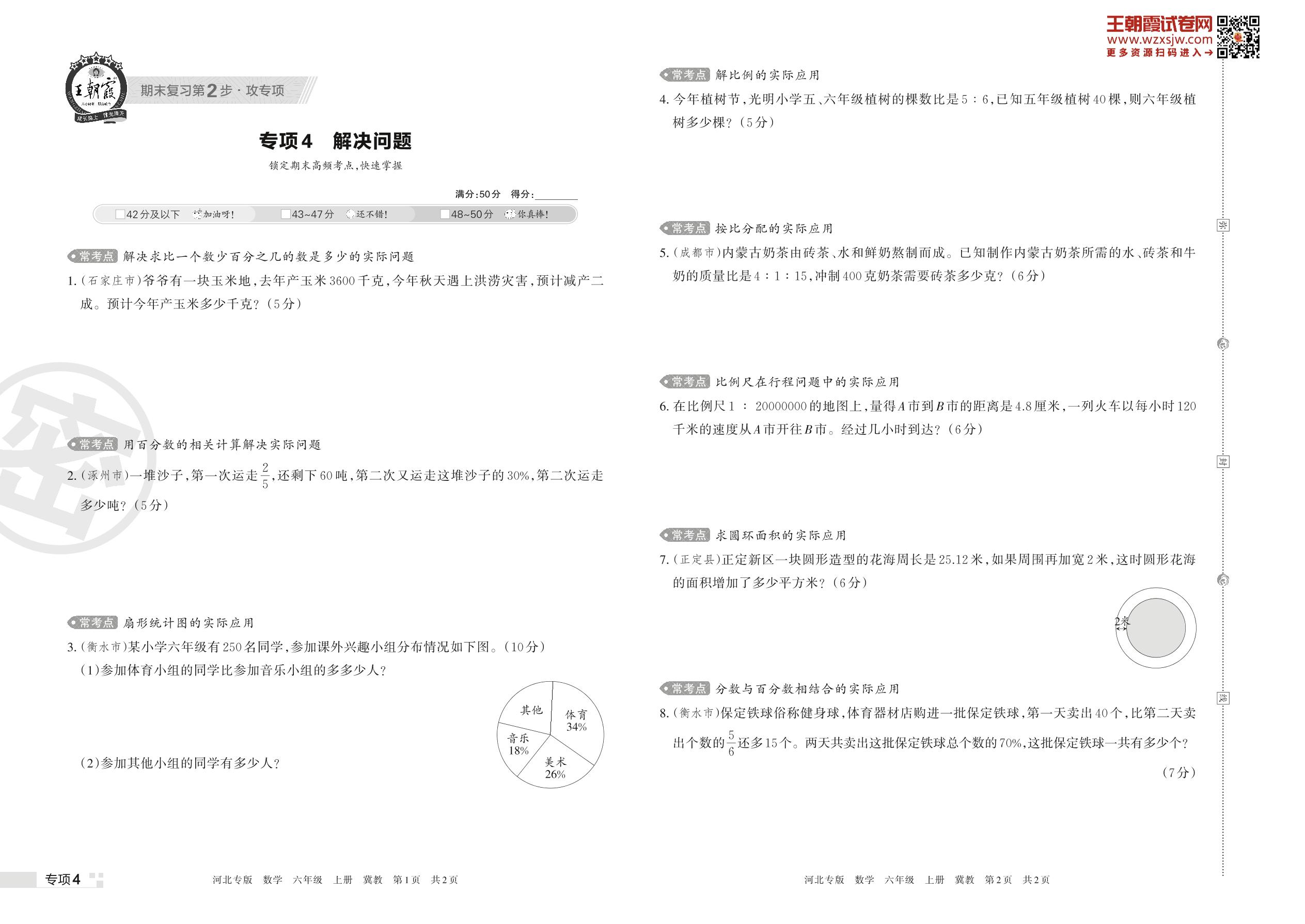 王朝霞期末专项卷——解决问题六年级上册数学(冀教版)【4】