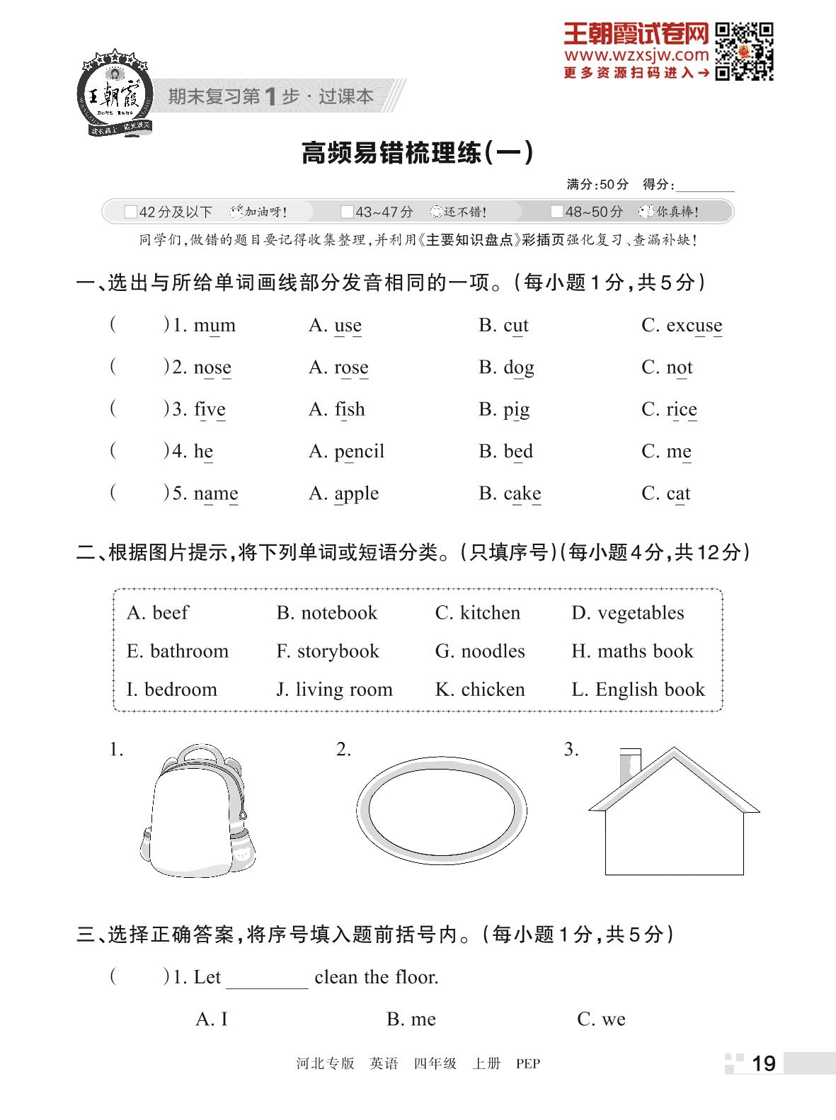 王朝霞期末过课本——高频易错梳理练(一)四年级上册英语(PEP版)_R221124110025133