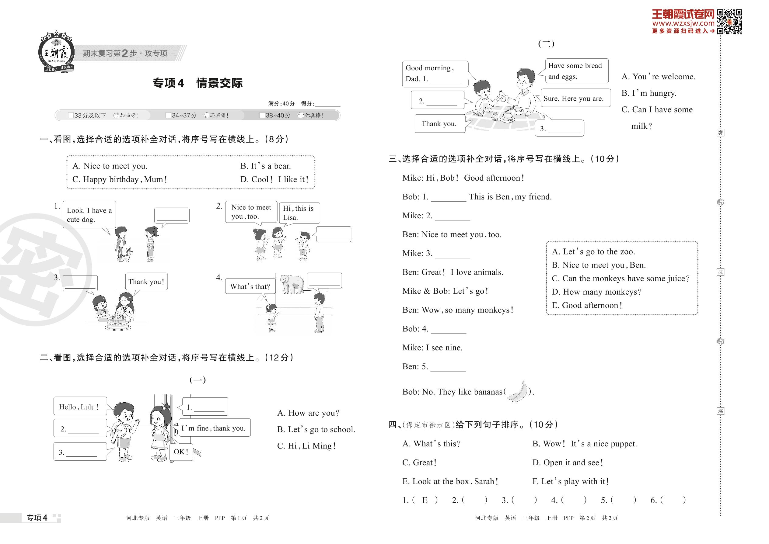王朝霞期末专项卷——情景交际三年级上册英语(PEP版)_R221124111710139【4】